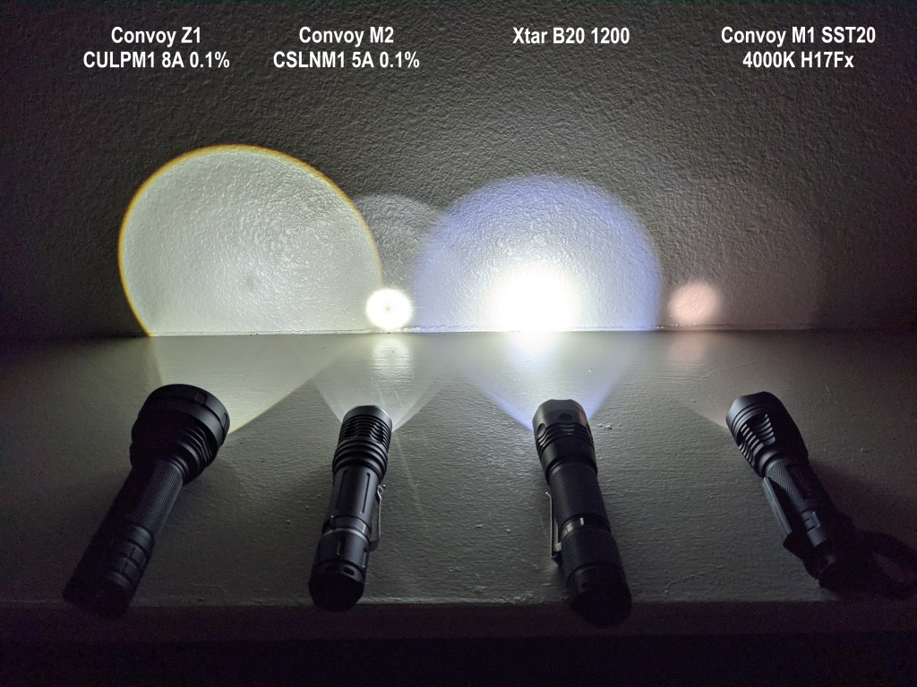 I don’t have a good way of measuring lumens. Officially, the B20 1200 is rated at 1200 lumens and I’ll be assuming that to be correct for all my lumen estimates. Here’s what I measured: