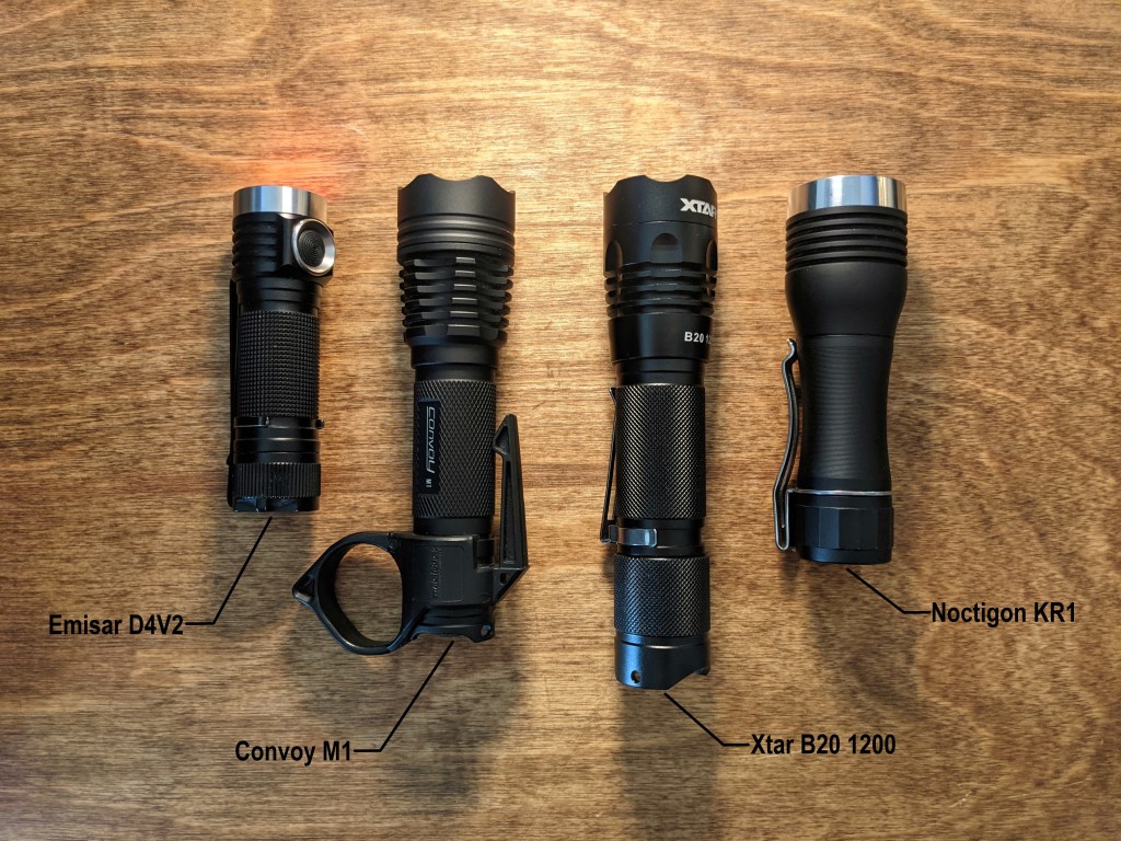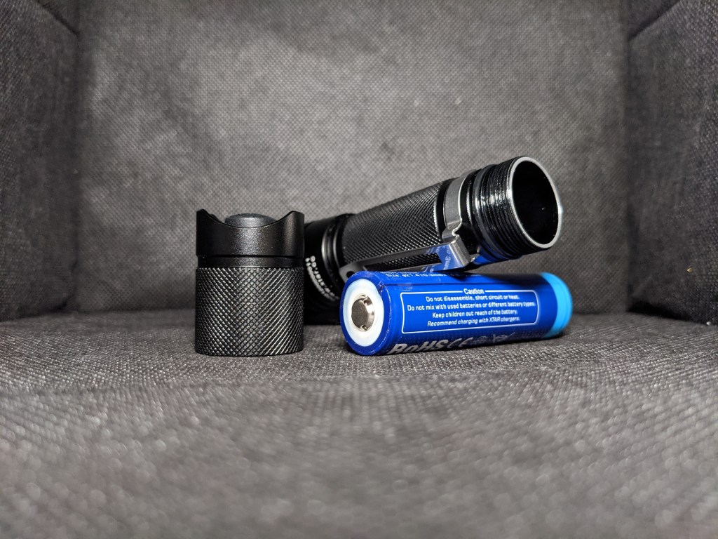 Convoy M21B: Similar size & design, same battery, programmable UI, no shortcuts, includes low voltage protection, wide range of emitter options, brighter and throws further. The light is very affordable, but the clip, battery, and charger have to be purchased separately. Also, you have to request a forward clicky switch because it doesn’t come with one by default.