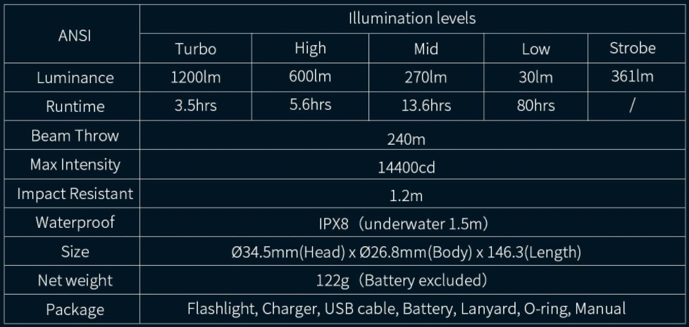 One thing that is weird regardless of the target audience is the mode order. Who thought that high > turbo > medium > low was a good idea? Modes should always be in a consistent order from dimmest to brightest, or in rare cases from brightest to dimmest, but never in a weird order like this.
