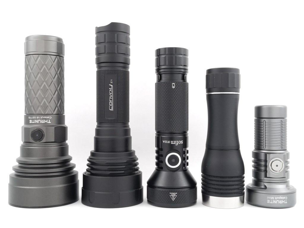 Thrunite Catapult Mini: 18350 battery, no pocket clip, narrow pencil beam, significantly smaller size, significantly lighter, USB A-to-C charging only, mind-blowingly low moonlight mode. This is a great option if you don’t care about a pocket clip or super long runtime, and you just want something miniscule that can really throw. It’s less useful than IF22A but a little bit more impressive because of its miniscule size.