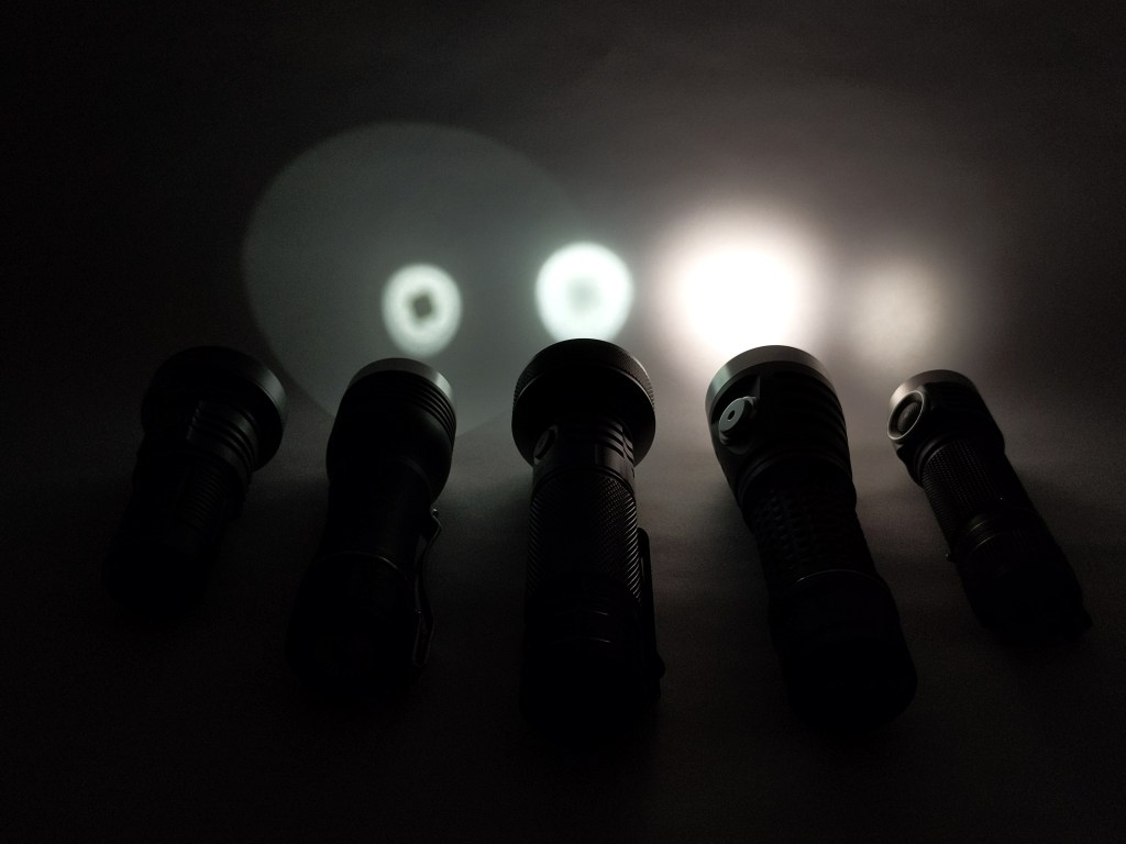 Manker U22 III: Larger head, higher price (especially with a battery), more throw, multiple emitter options (including SFT40), powerbank functionality requires proprietary cable. This is probably a better choice if you want more throw, have a bigger budget, and don’t care about pocketability.