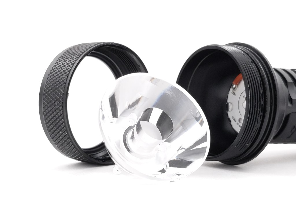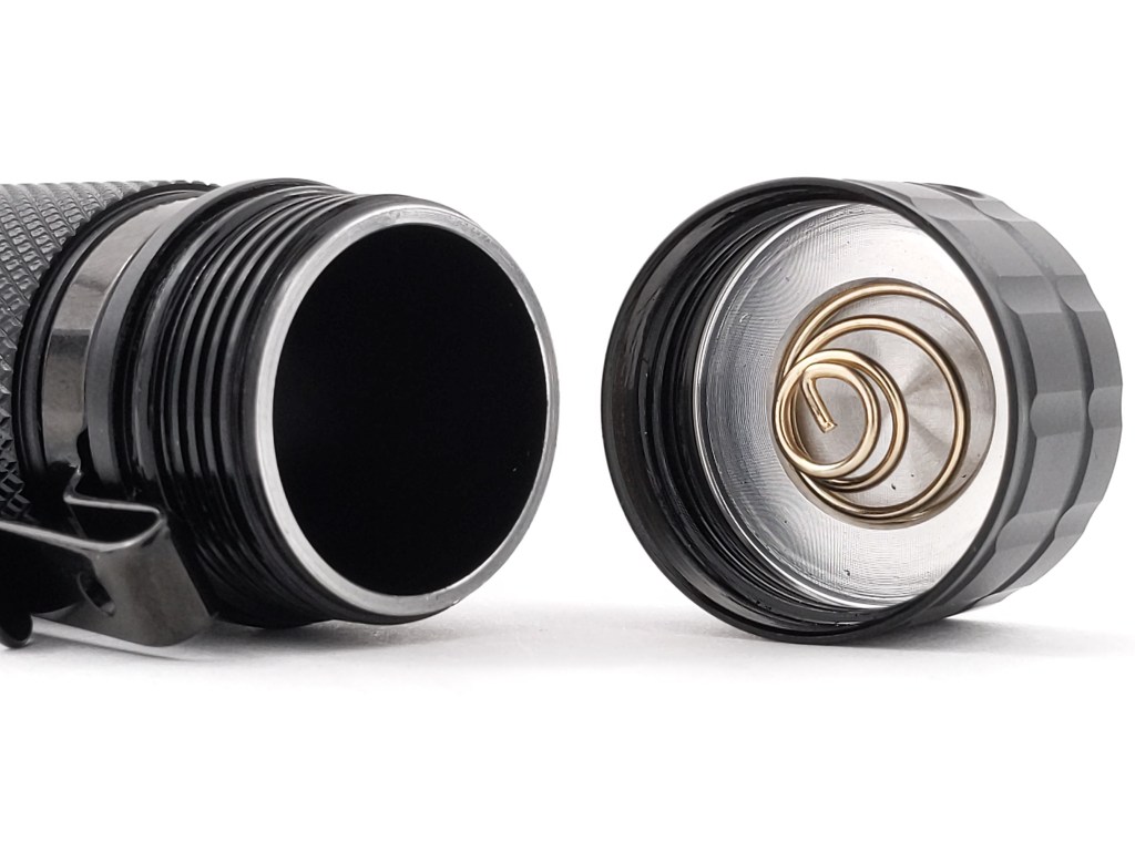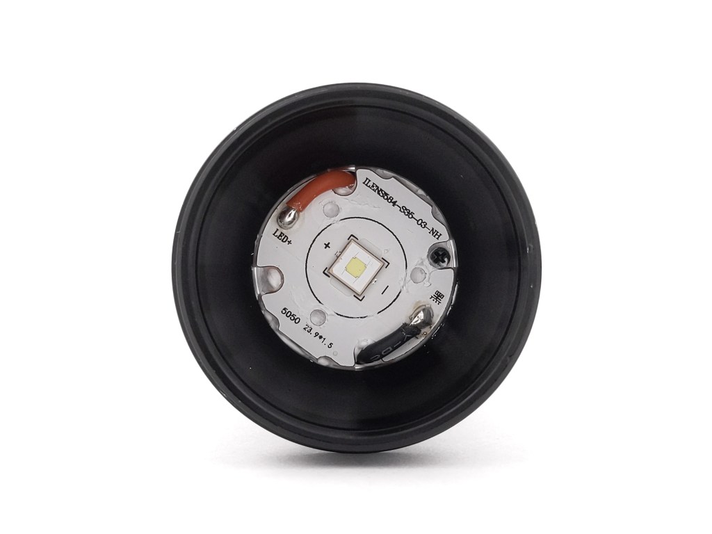 Build quality is as expected from Sofirn. It’s perfectly satisfactory but nothing noteworthy. Threads on the body tube are thick, anodized, lubed, and square cut. The threads on the bezel are anodized and generously lubed. There’s a not-particularly-beefy spring in the tailcap but it seems like it’s up to the task. I mentioned earlier that there are no MCPCB screws and that’s a little weird.