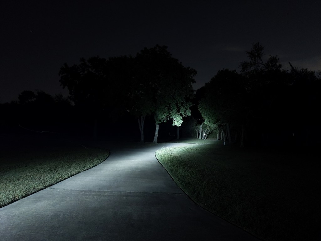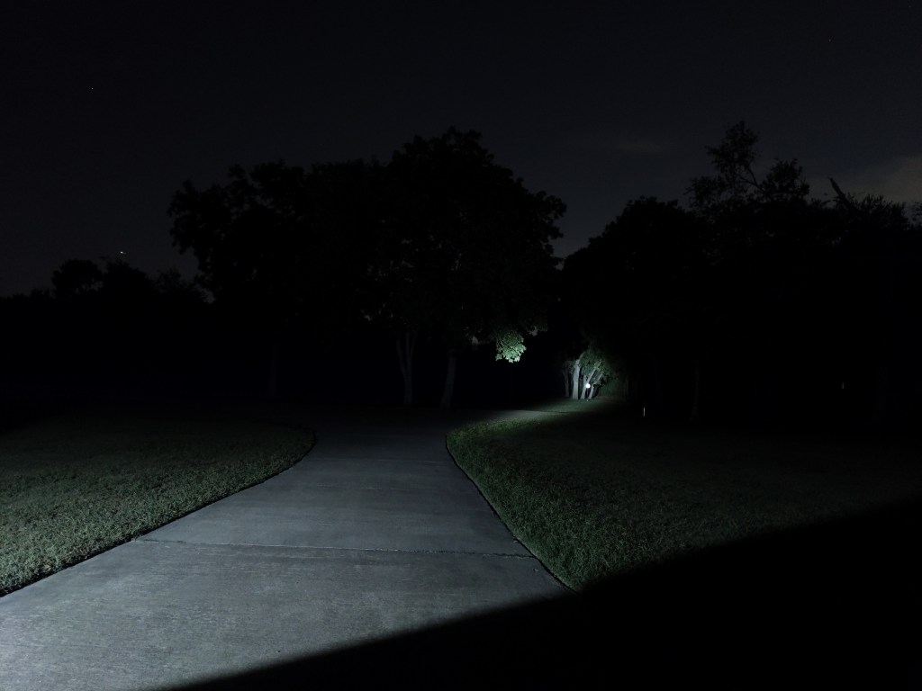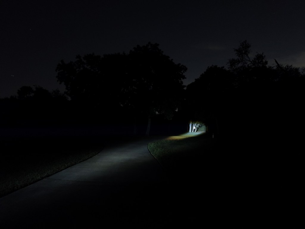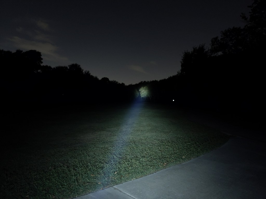 The beam is narrow and cool white, but not nearly as cool as these pictures look. The hotspot is nice and even with a little bit of corona. The spill is minimal, not particularly defined, and has a faint ring in it. Its a great beam for a compact TIR thrower like this, but it’s not particularly useful close up. One interesting thing I noticed is that it has significantly less tint-shift than my Catapult Mini, and both use the same optic.