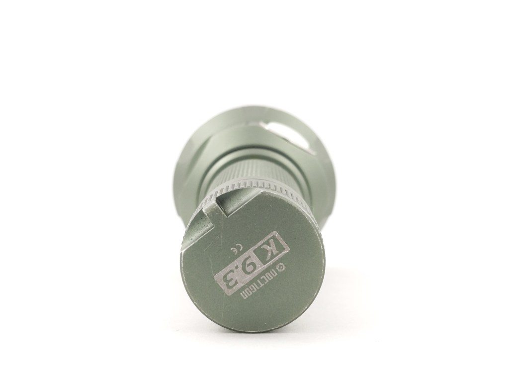 K9.3 uses a white, backlit, electronic, side switch. The backlighting isn’t RGB, but you can choose the color when you order. The owner of this light chose green, of course. It’s a fine switch and I love that it’s backlit.
