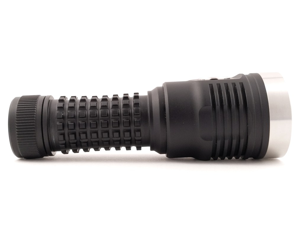 Ergonomics: The tube is just too small for the head of the light, and it throws off the ergonomics. If I put my thumb on the button, my pinky hangs halfway off. If I grip it close to the head, my thumb is so far forward that reaching the button is awkward. The neck of the head is so wide it throws off the ergo’s a little too. Don’t get me wrong, it’s perfectly usable but it doesn’t give me that “OK, yeah, this is right” feeling when I hold it. I get that from D4SV2 with a 26800 tube and from a KR1. Those are ergonomic masterpieces, and I think this could have been too with a 26800 body tube like you can get for D4SV2.