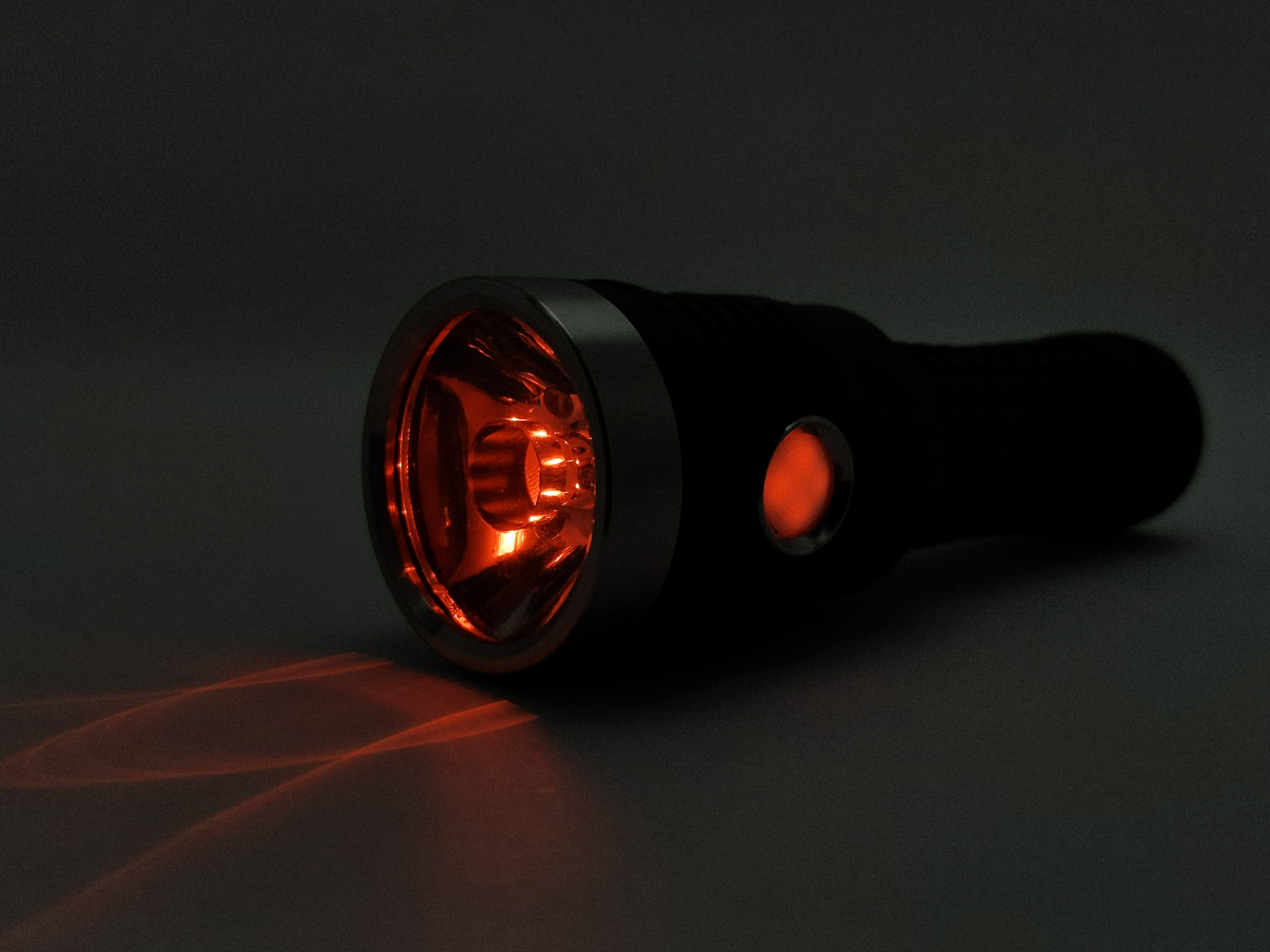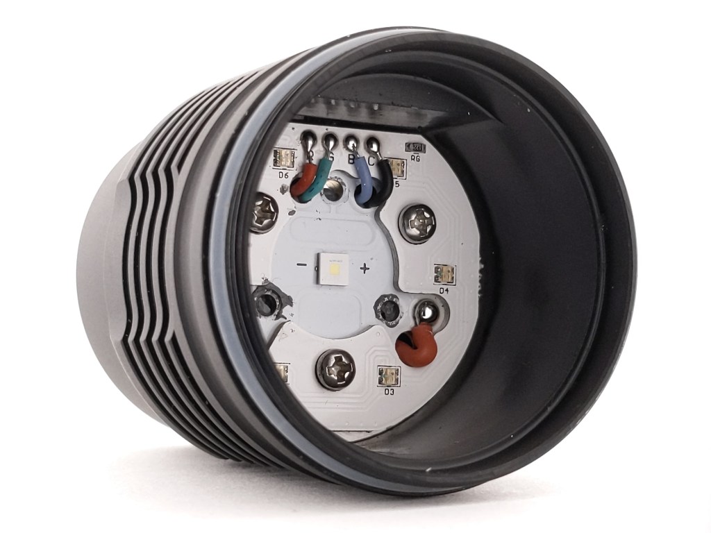 Aux LED’s: DM11 has 6 RGB aux LED’s behind the big TIR optic. This is the first light available with a bit TIR and aux LED’s. They are just beautiful. I like mine to be red, but you can change them to any of 7 colors, or have them rotate colors.