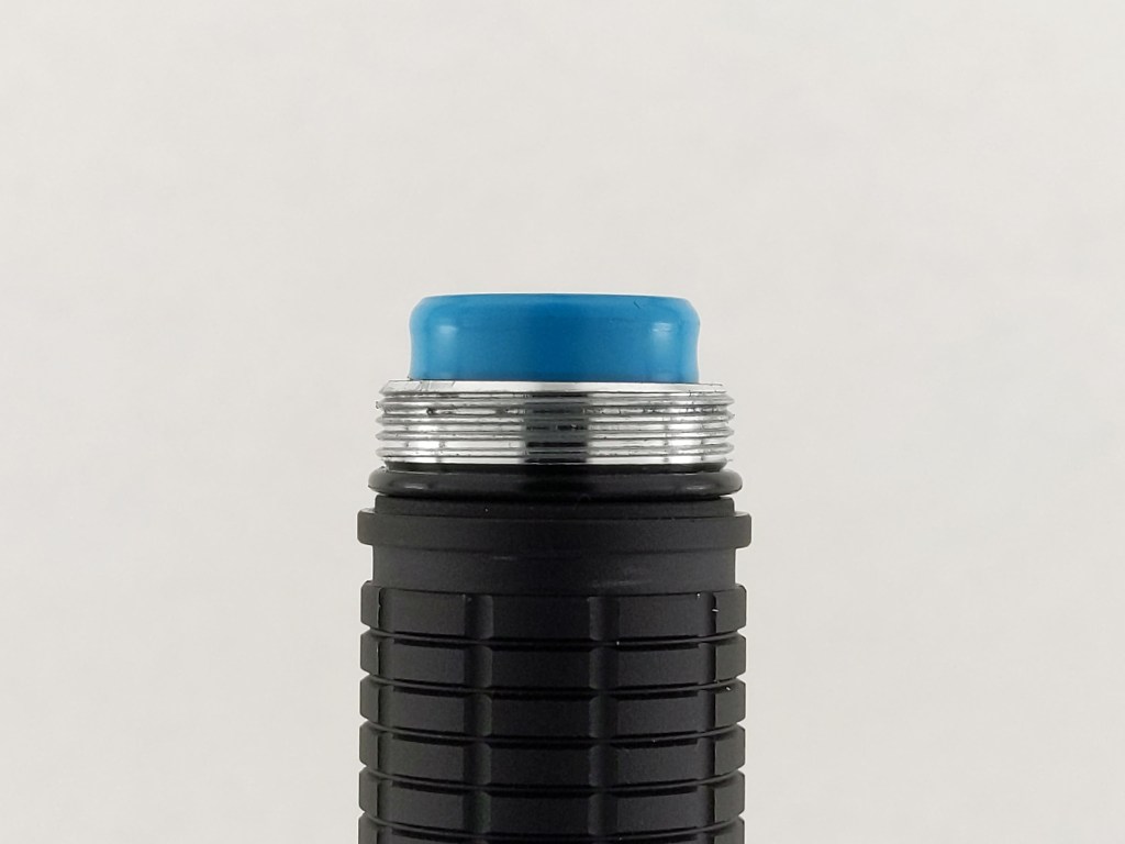 Build quality is excellent for the price, as one would expect from Convoy. The anodizing is applied evenly and has a hint of chalkiness to it. The tail threads are anodized, lightly lubricated, and trapezoidal cut. Mechanical lockout works well from the tail. The head threads aren’t quite as nice, being finer and un-anodized. The tailcap has a nice, long, beefy spring, but no magnet. Update: there is now a magnet that you can purchase separately and glue onto the tailcap if you wish.