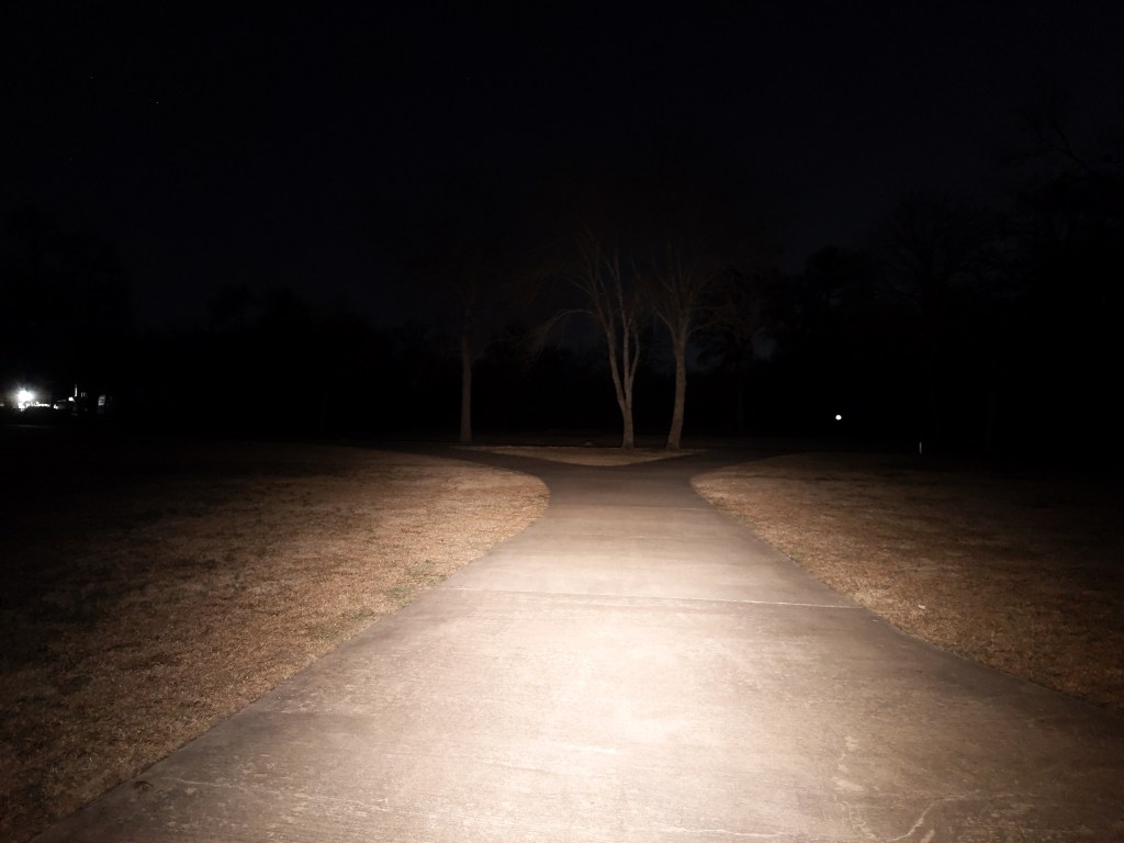 In the beamshots above, the trees where I’m aiming the hotspot are 175M away. In the beamshots below, the park bench where I’m aiming the hotspot is 42M away.