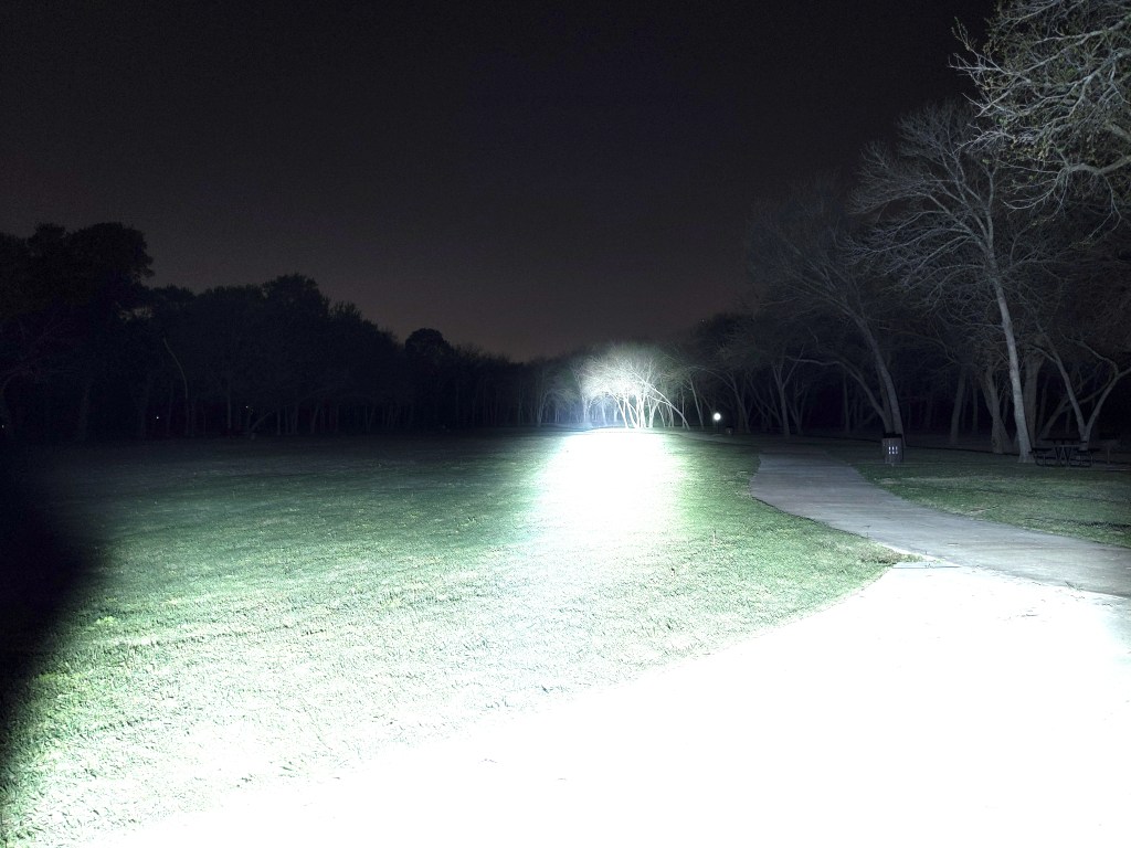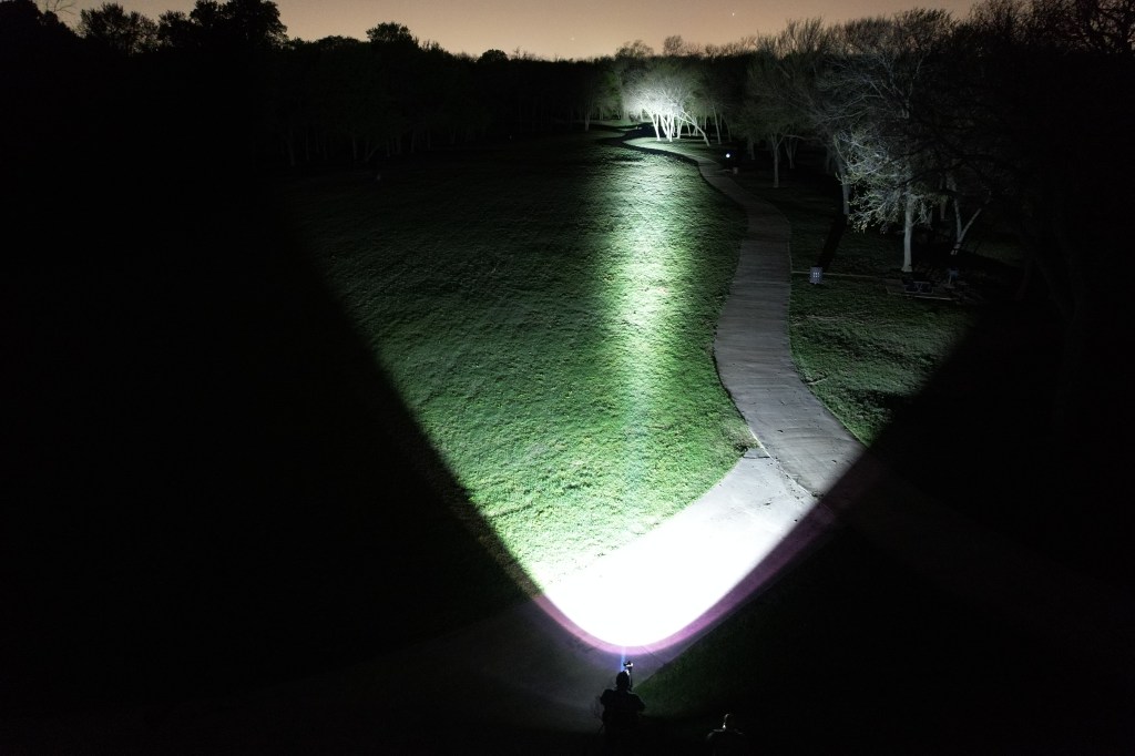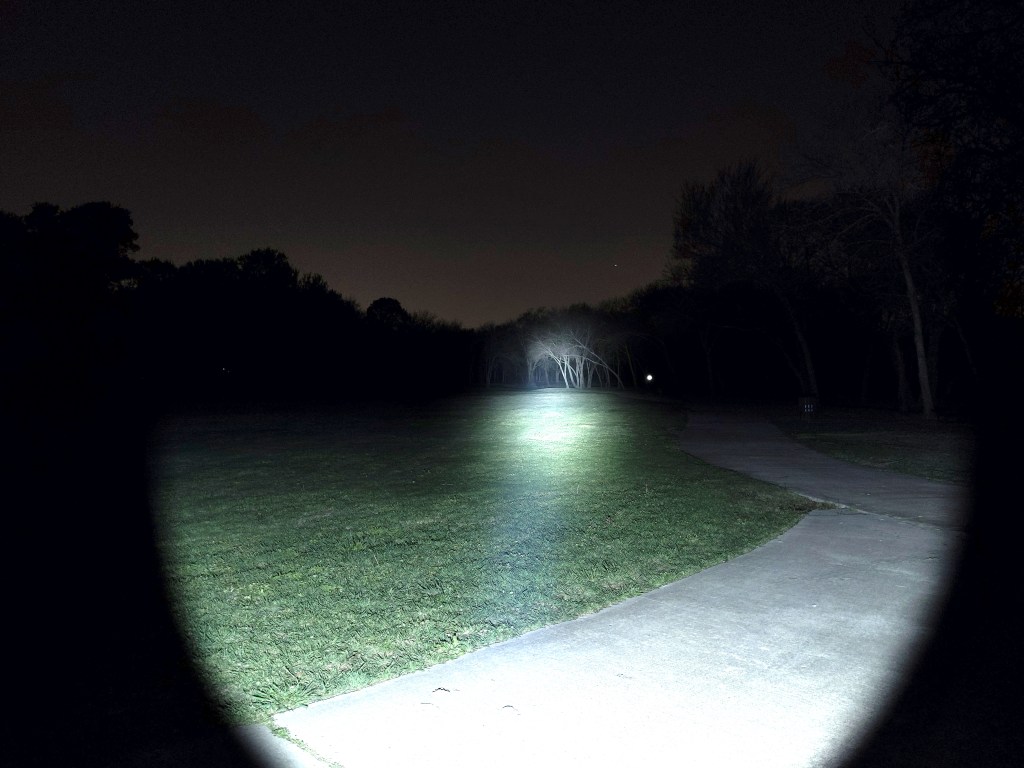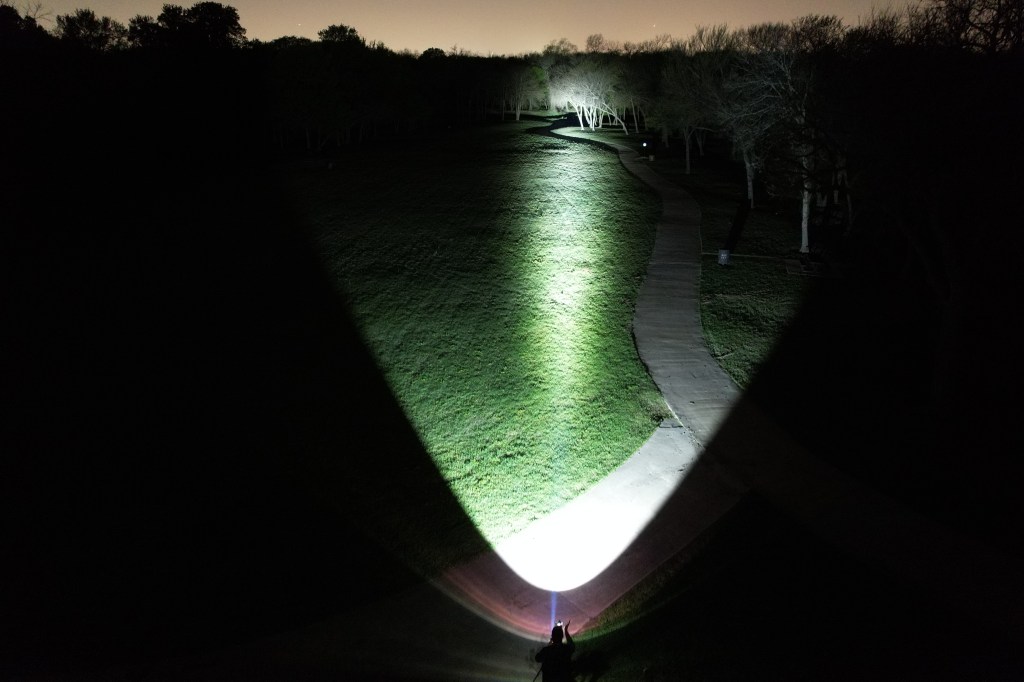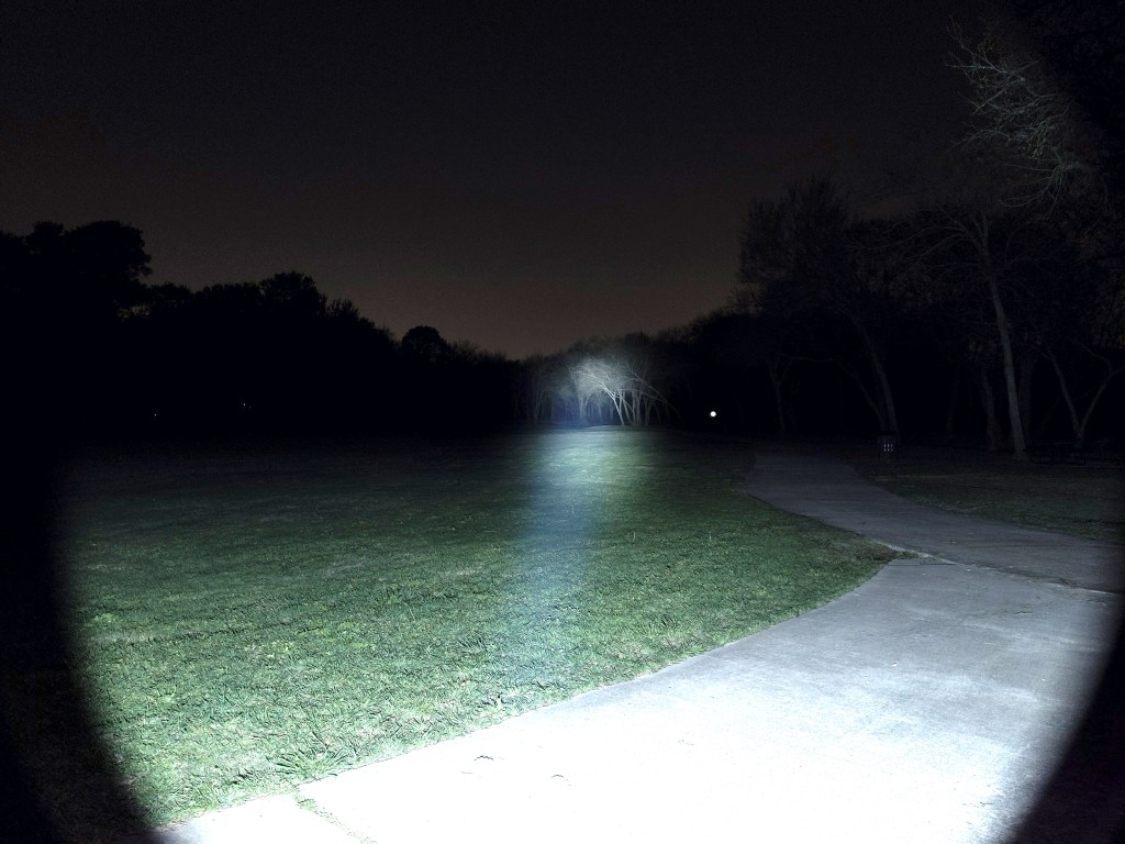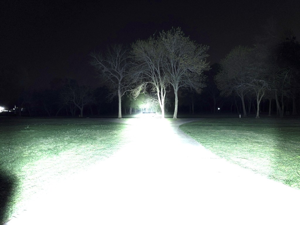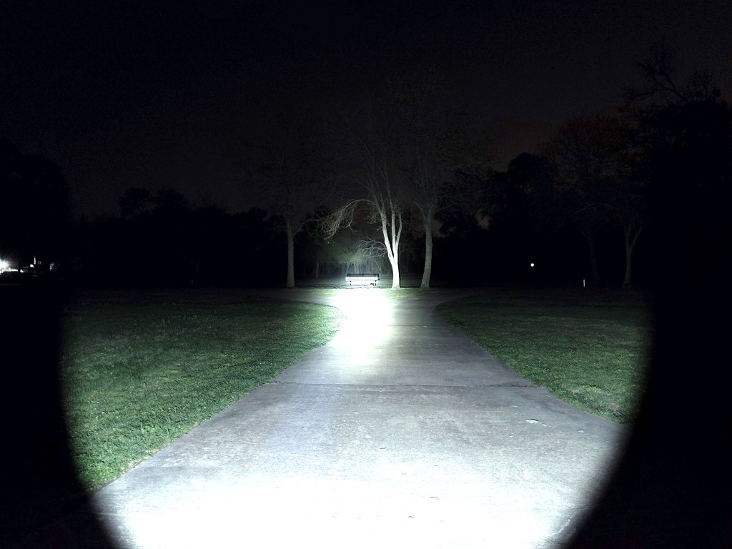 In the beamshots above, the trees where I’m aiming the hotspot are 175M away. In the beamshots below, the park bench where I’m aiming the hotspot is 42M away.