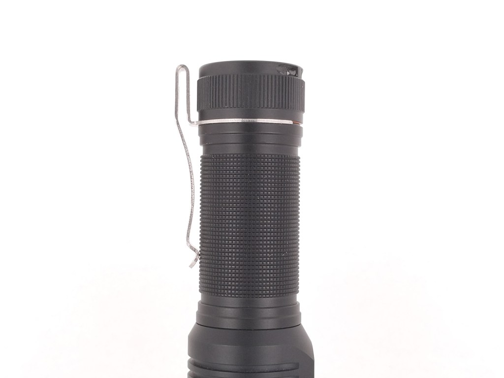 I wanted a pocket clip on my D4SV2, so I modified a KR4 clip for that purpose. I cut the clip ring directly across from the clip and slowly bent the ring out to make it large enough to fit around D4SV2’s tail threads. Then I placed some 24AWG copper wire in the tailcap to act as a conductive spacer, so the light would work. When I crank the tailcap down, it holds the clip in place quite securely. It carries deep, goes in and out of the pocket easily, and doesn’t prevent tailstanding.