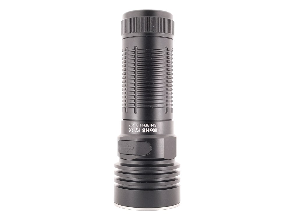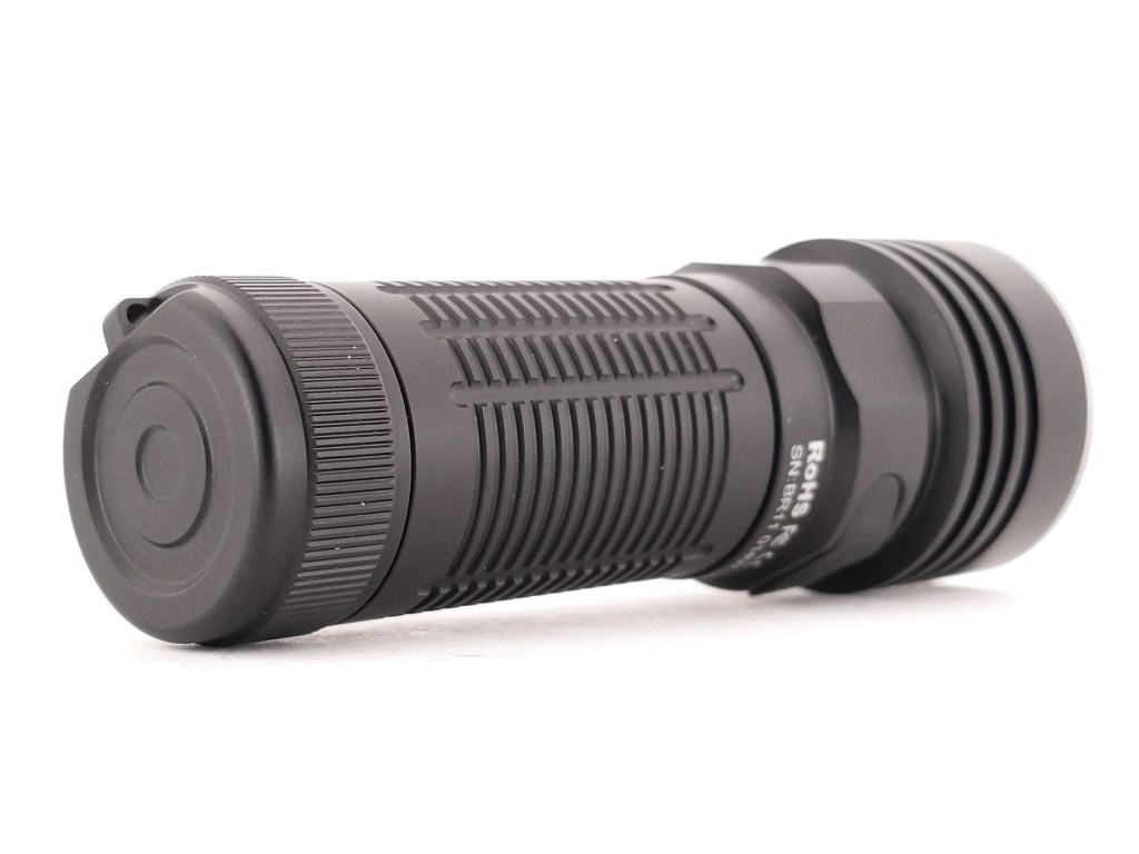 Build quality is great. It feels very solid in the hand with no sharp edges. The anodizing is very dark and a bit glossy. The only qualm I have is with the tail threads. They unanodized and feel rough, so I recommend using the head for cell swaps. It’s worth noting that there’s no anti-roll feature.
