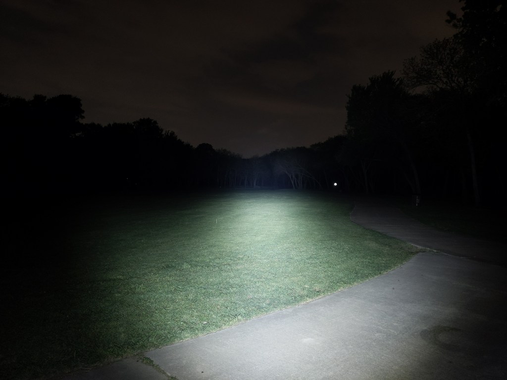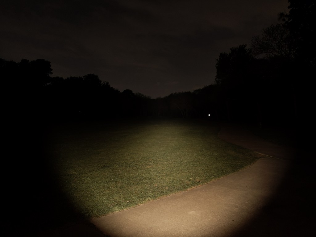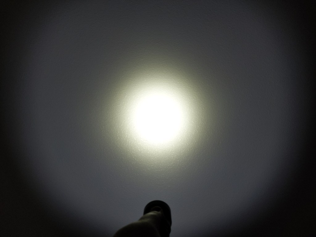 The beam is bright and floody, but there’s a lot of tint shift. This is to be expected from an XHP70.2 paired with a reflector. The hotspot is a little bit warm, the corona is yellow-green, and the spill is cool. It’s not the greatest beam for hunting white walls, but it’s perfectly fine during normal use.