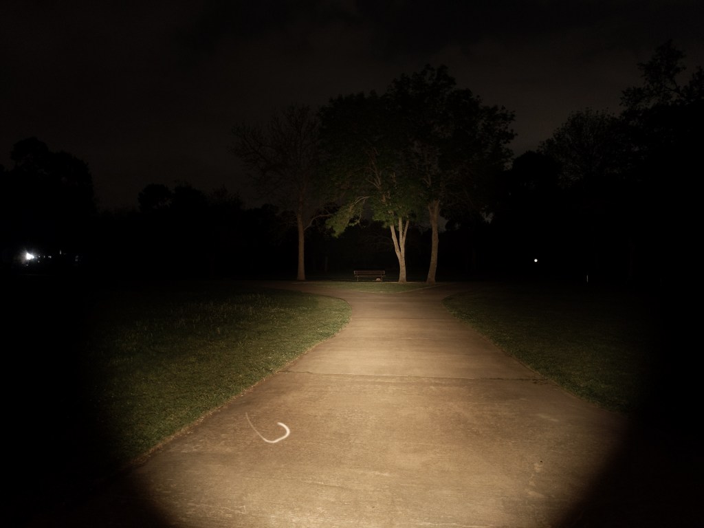 In the beamshots above, the trees where I’m aiming the hotspot are 175M away. In the beamshots below, the park bench where I’m aiming the hotspot is 42M away.