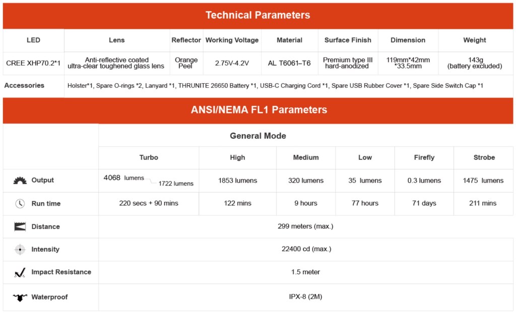 Thrunite sent me this light in exchange for an honest review. Here is the official product page on their website, but it’s also available on Amazon at a lower price. Below are the specs from the official product page.