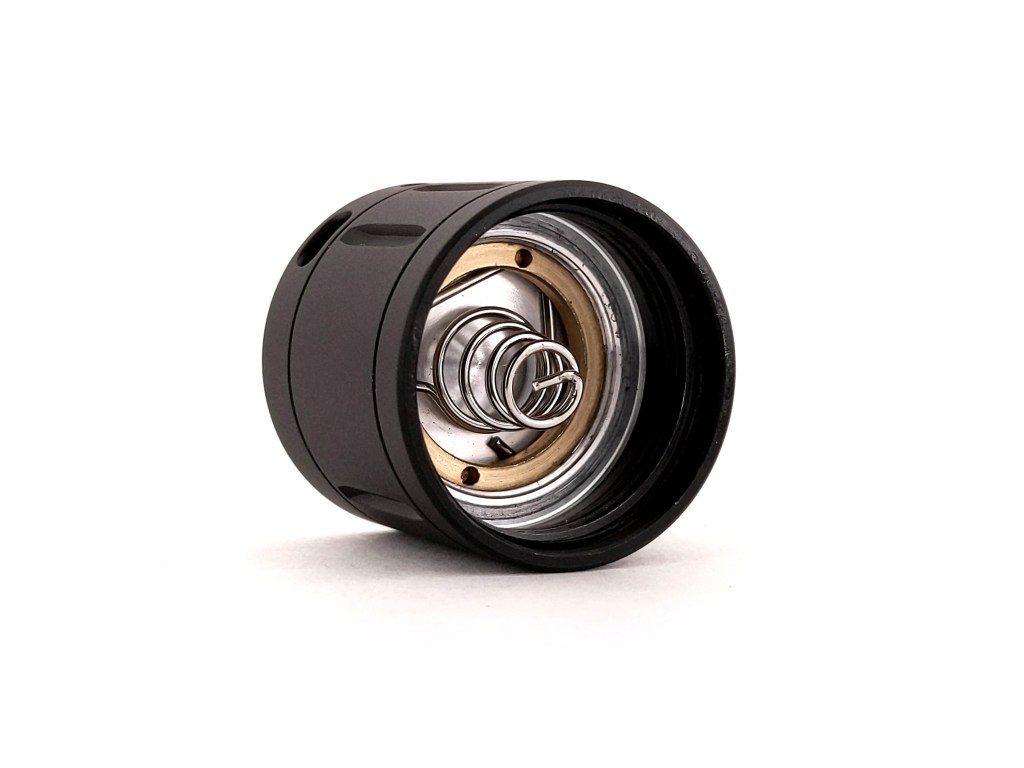 M21D uses one 21700 battery. For best performance, you’ll want to use one with a discharge rating of at least 10 amps. I’m using a Molicel P42A for my testing. Unprotected flat top cells will work, but the driver has a brass post instead of a spring for the positive contact. That means that shorter cells (like unprotected flat tops) will flicker when you jostle the light. If you want to use unprotected flat top cells, I recommend picking up these spacers with your order to take up the slack and make the light more reliable. Button tops and protected cells should fit just fine and should be less prone to flickering when the light is jostled.