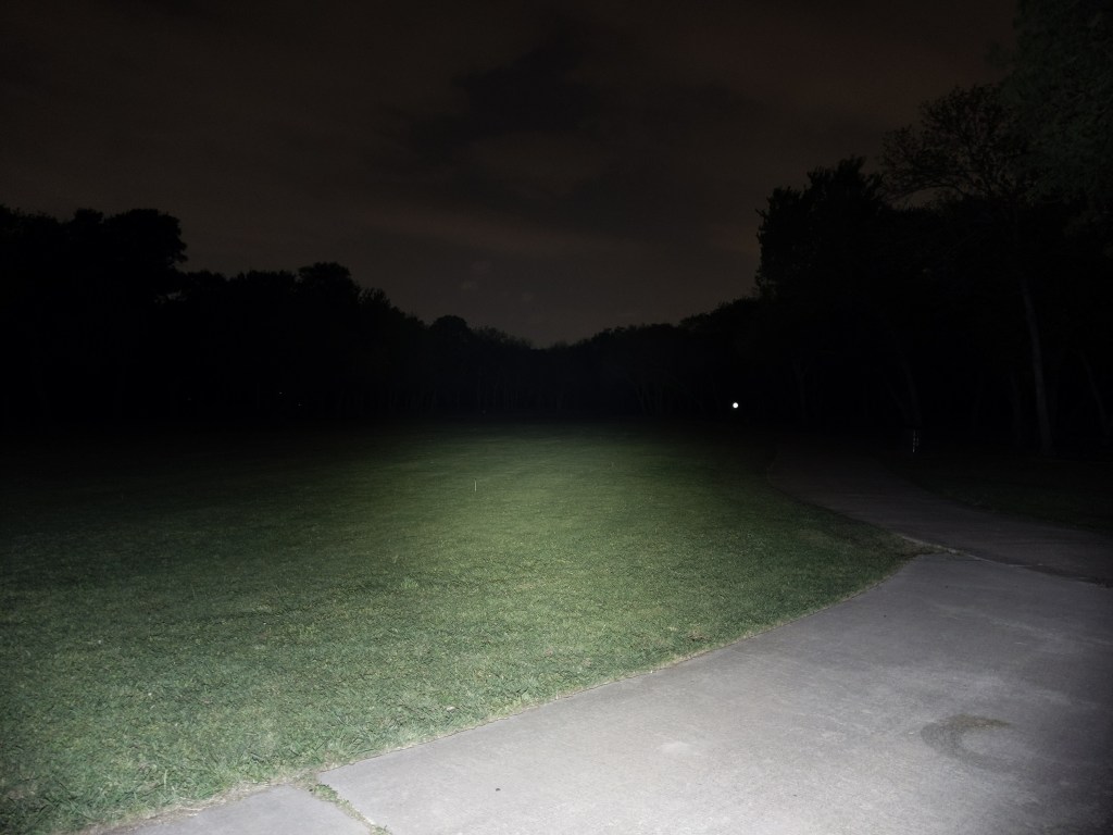M21D has a large, deep reflector that’s good for throw. Even with the relatively floody GT-FC40 emitter, it produces a narrower beam with narrower spill that’s got a lot more reach than a smaller light like Noctigon KR1 FC40. It’s a great outdoor beam for walking around. The beamshots below are a little under-exposed, so it looks a bit brighter in real life.