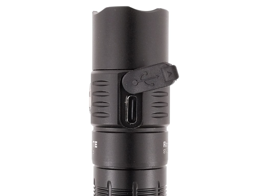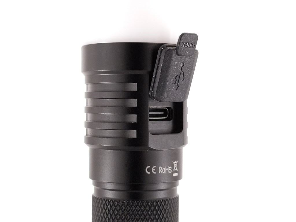 I strongly dislike this charging port cover. It’s not nearly secure enough and it’s difficult to get it seated properly. It’s a little bit too long for the USB port, so it takes some fiddling to get it seated. It’s flat on the sides instead of having a lip around the bottom edge so there’s nothing but friction holding it in place. The tab on the end sticks out a fair bit and it’s very grippy, so it often grabbed my pocket and opened when I pulled the light from my pocket. There’s no slack in its connection to the light either, so when rotating it out of the way for charging it will sometimes kink instead of rotating. This port cover is consistently annoying, whether you use the integrated charging or not.