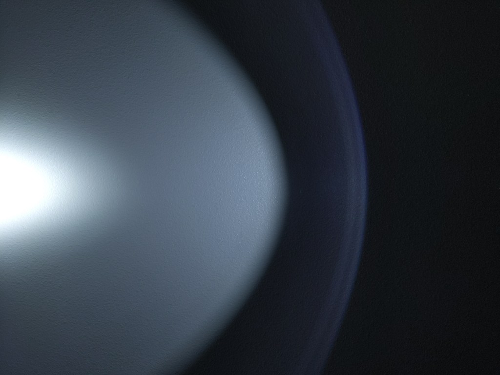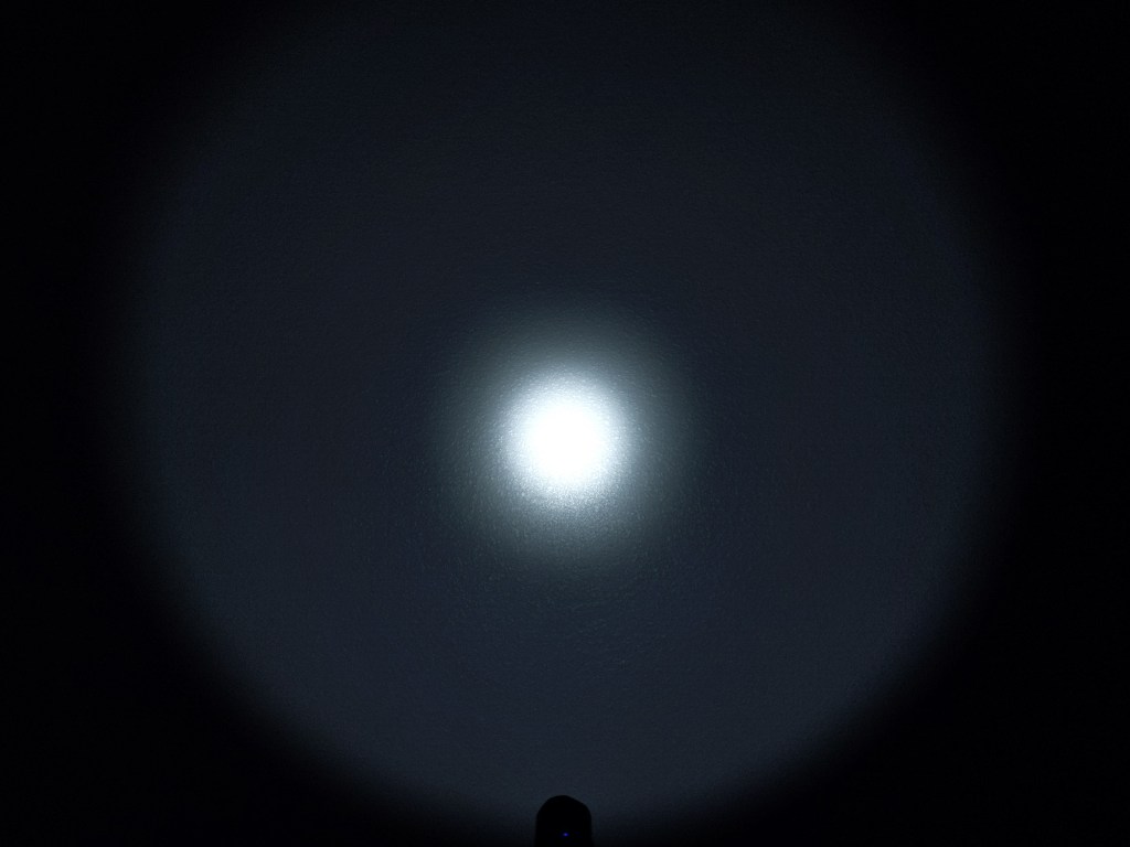 The hotspot is narrow with a tiny dark spot in the middle, but you don’t notice during normal use. It’s possible that’s only a problem on my sample because of the speck on the LED. There’s some smooth corona that transitions to bright spill and that all looks great. Outside the spill though, there are multiple magenta rings from the AR coating on the lens. It’s not the prettiest thing but it doesn’t hinder the functionality of the light at all.