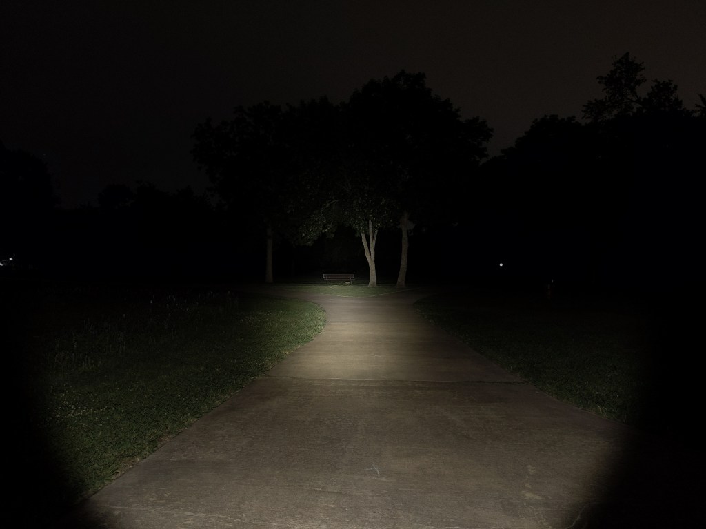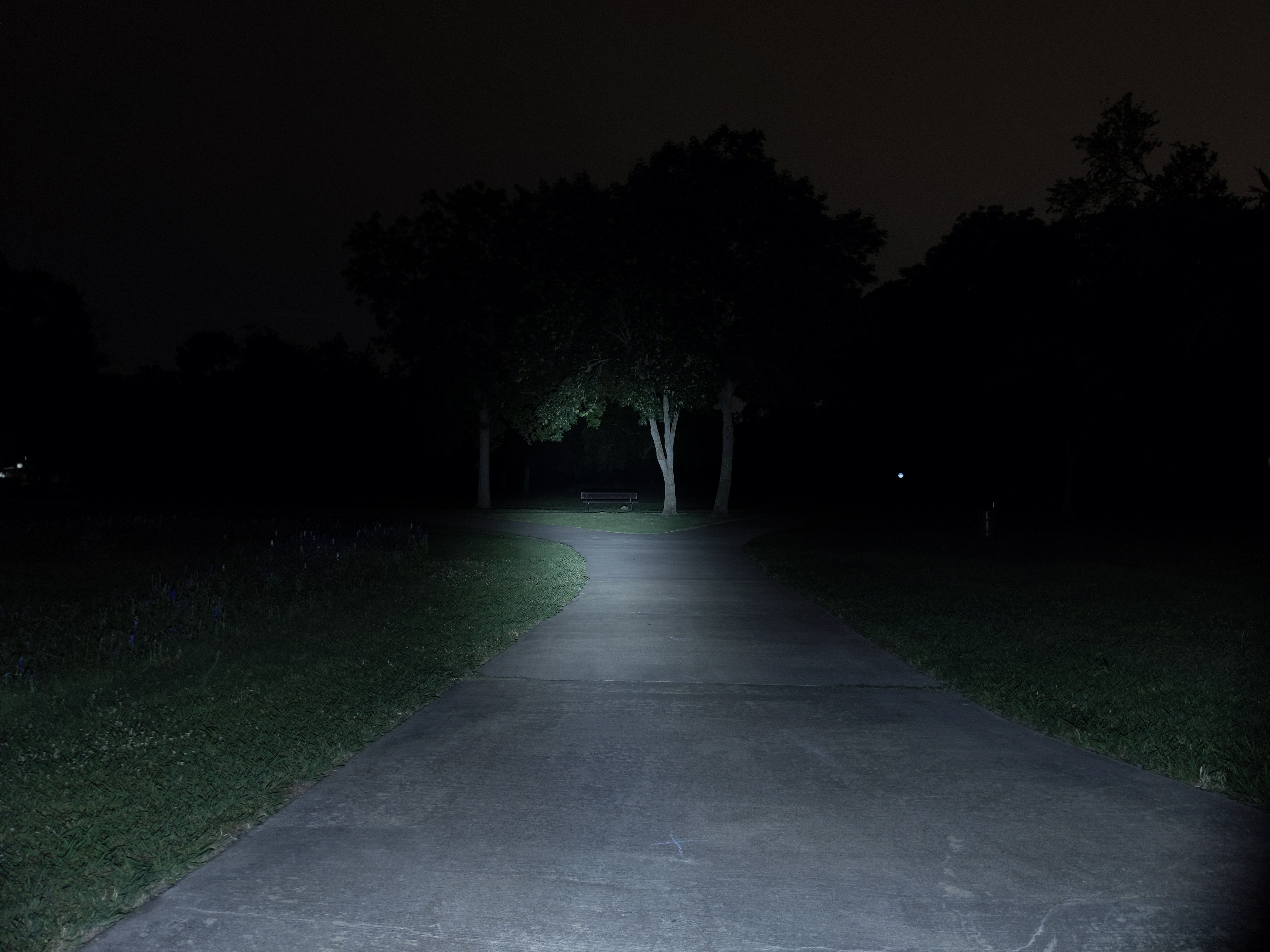In the beamshots above, the trees where I’m aiming the hotspot are 175M away. In the beamshots below, the park bench where I’m aiming the hotspot is 42M away.