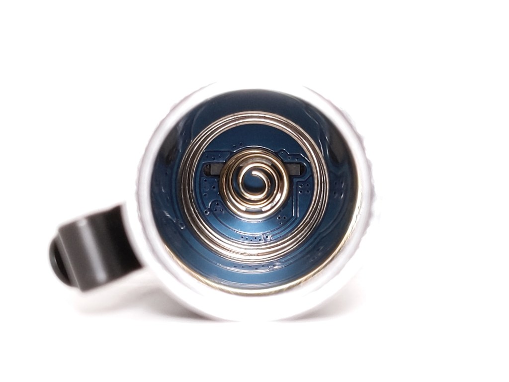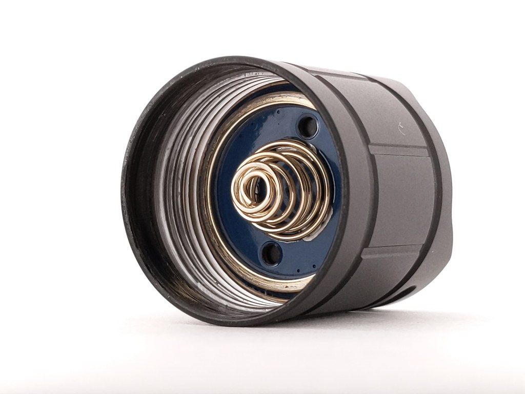 The body tube is glued to the head so I wasn’t able to get a great photo of the driver. It appears to be using one circular PWB like most lights, plus a daughter board that sticks up into the head. Based on my regulation testing, I believe this is an unregulated FET driver. That’s a little disappointing coming from Thrunite, but it’s not unusual at this price point with all the other features offered in TN12 Pro.