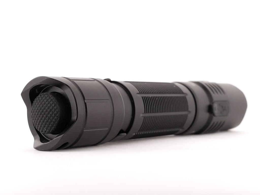 The design is a fairly typical dual-switch tube light and I think it looks good. There’s some milling on the body tube that looks nicer and is less aggressive than the knurling on its predecessor, TN12 V4. It’s a cool looking light without screaming “tactical”. There are some mild crenulations in the bezel that will allow some light through if you set it face-down and it gets activated.