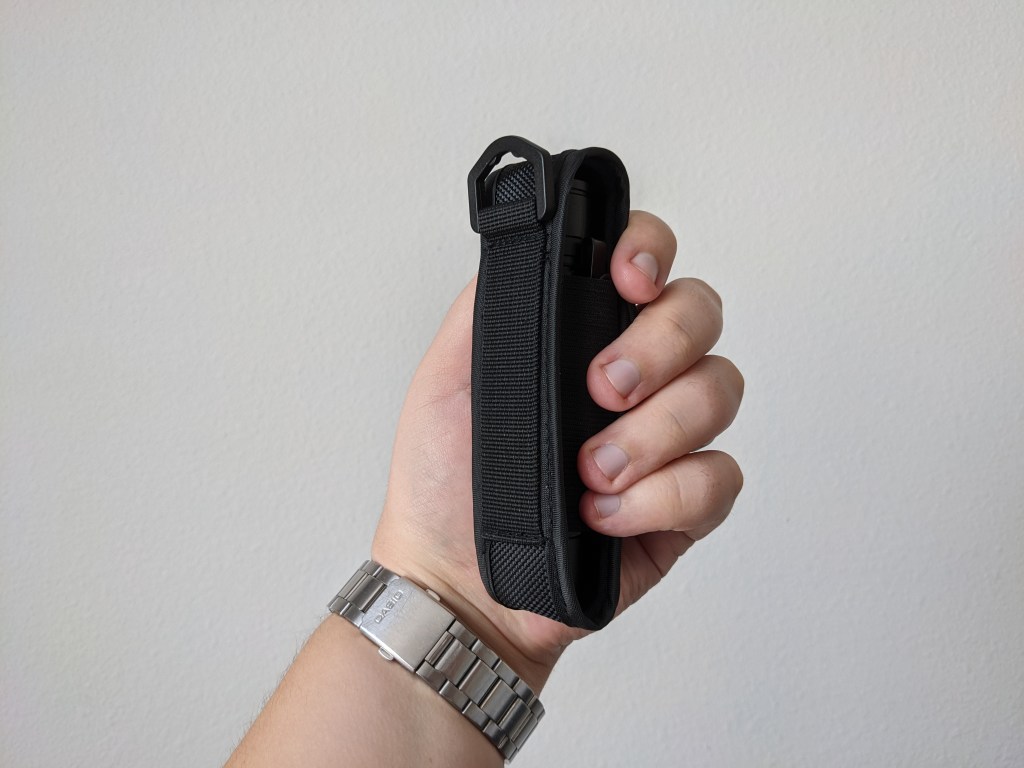 The included belt holster is fine. It’s got a velcro closure and a d-ring at the top. It feels a little flimsy and you have to remove your belt to thread it on, but at this price point I’m just impressed one is included at all, so I’ll take it. The included lanyard is high quality and has a little adjustable tightener to keep it snug on your wrist.