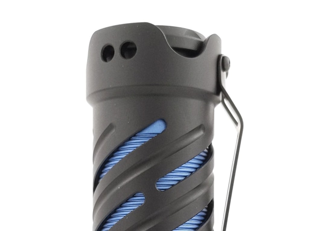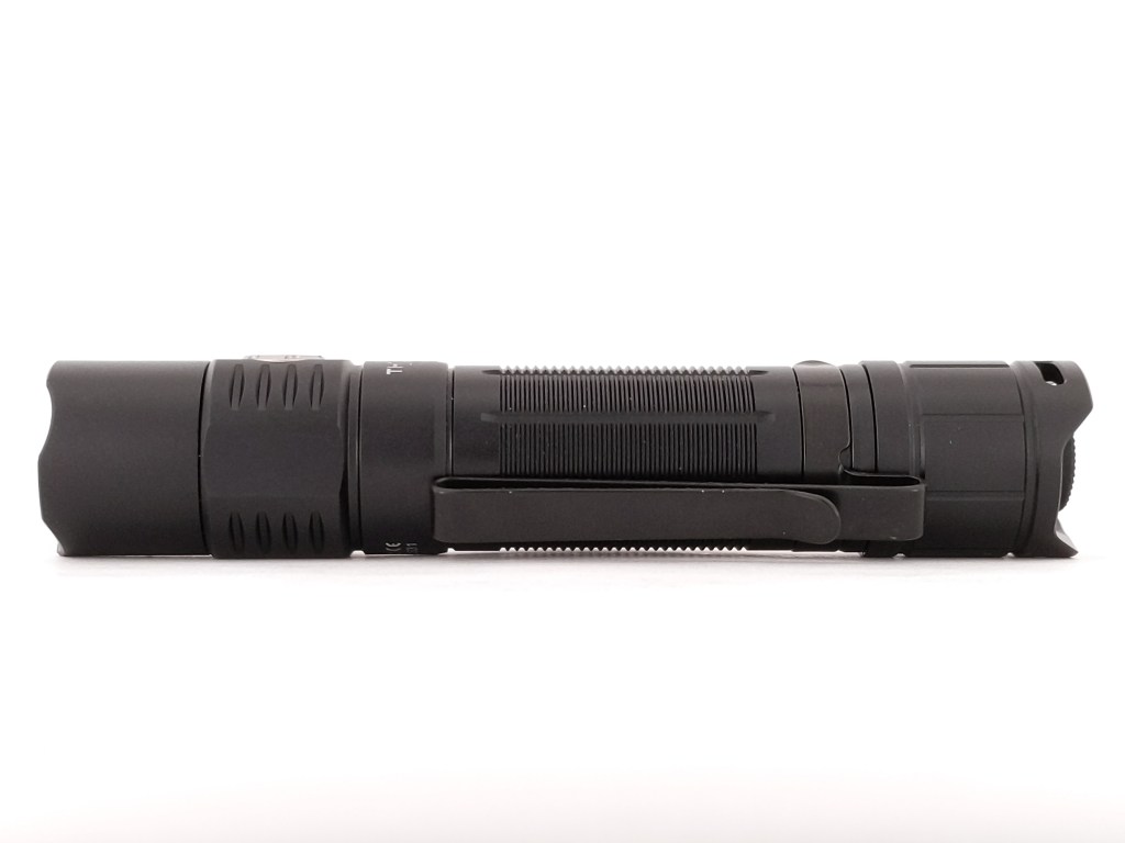 The pocket clip is pretty good and is a significant upgrade from the one on TN12 V4. There’s not much ramp at the front but it still slides over my pockets easily. It lands on a smooth spot on the body tube so it won’t tear up your pockets. It’s not what I’d call deep carry but it carries deeper than a lot of other tactical EDC lights. It’s bidirectional too so in a pinch you can clip it to a hat. Most importantly, it’s wide enough to actually fit pocket/hat brim material inside the loop-over parts of the clip. Some older clips from Thrunite were too narrow so despite being “deep carry” you couldn’t actually get the light to fully seat in your pocket. A good clip is critical and Thrunite nailed this one. My only gripe is that the tailcap fins & the side switch don’t align, so I can’t rotate the clip to align with both. I have to choose between lining it up with the tailcap or lining it up opposite the side switch.