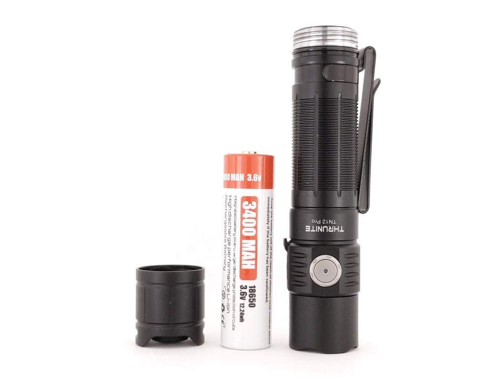 Thrunite includes a 3400mah protected button top 18650 cell. I measured its capacity on my SkyRC MC3000 at 3240mah. Its a fine cell but it’s unusually long, even for a protected 18650, at 70.5mm. I also tested with an unprotected flat top 18650 and it worked just fine as well. Notably, two CR123A’s are not supported in TN12 Pro like they were in previous versions of TN12. Presumably that’s because this Pro version is using an inferior FET driver while previous versions used Buck drivers that could handle the extra voltage.