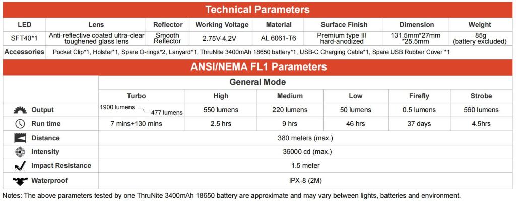 Thrunite sent me this light in exchange for an honest review. Here is the official product page and here is the Amazon listing where it’s going for a little over $40 after a coupon at the time of writing. Below are the official specs.