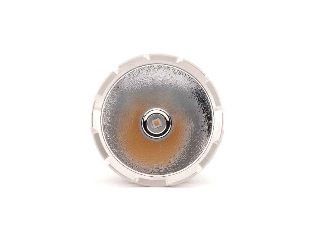 The LED sits in the bottom of a deep reflector. By default all C8+’s come with a smooth reflector, but you can request an OP one in the order notes or just buy it separately.