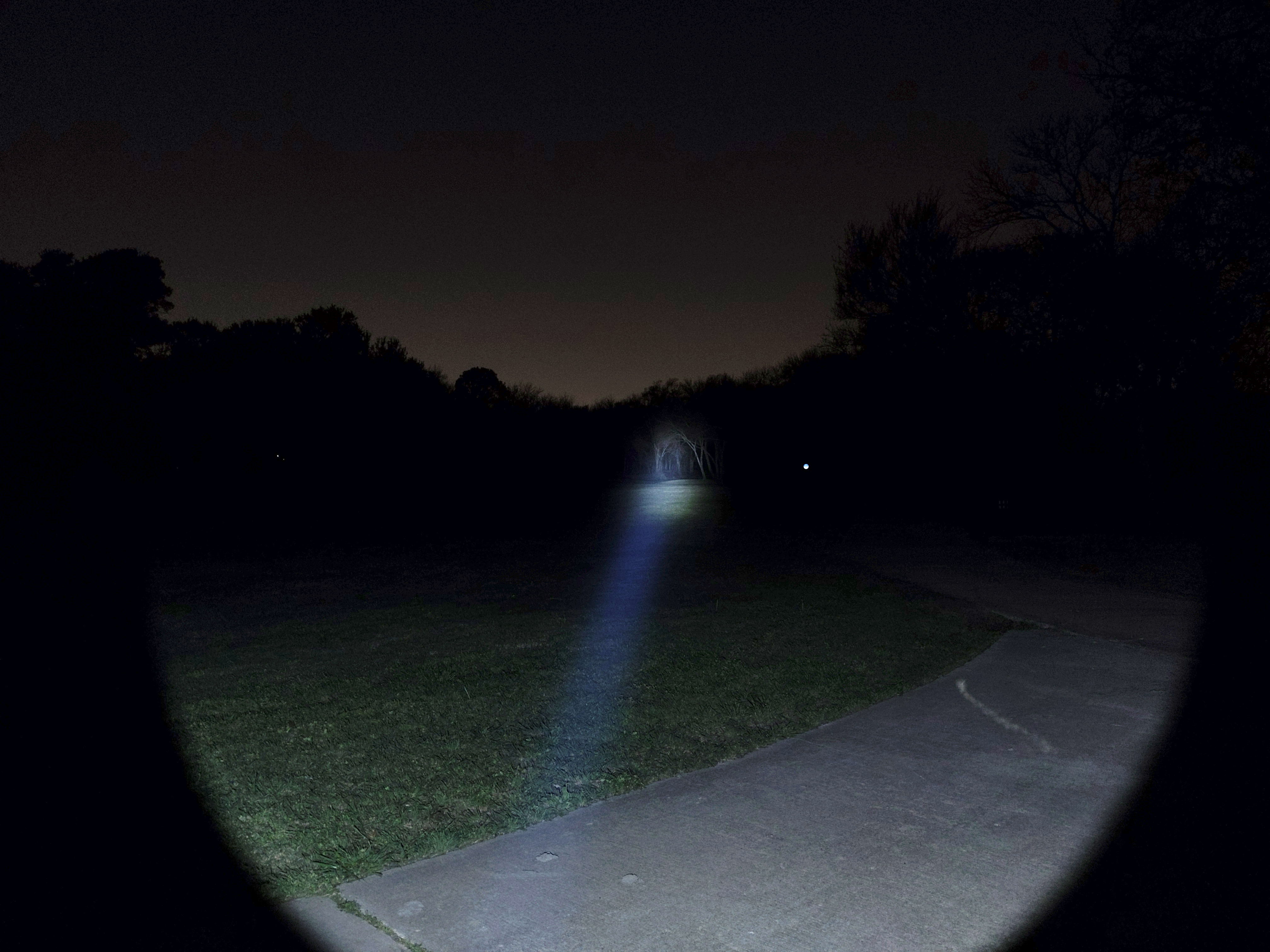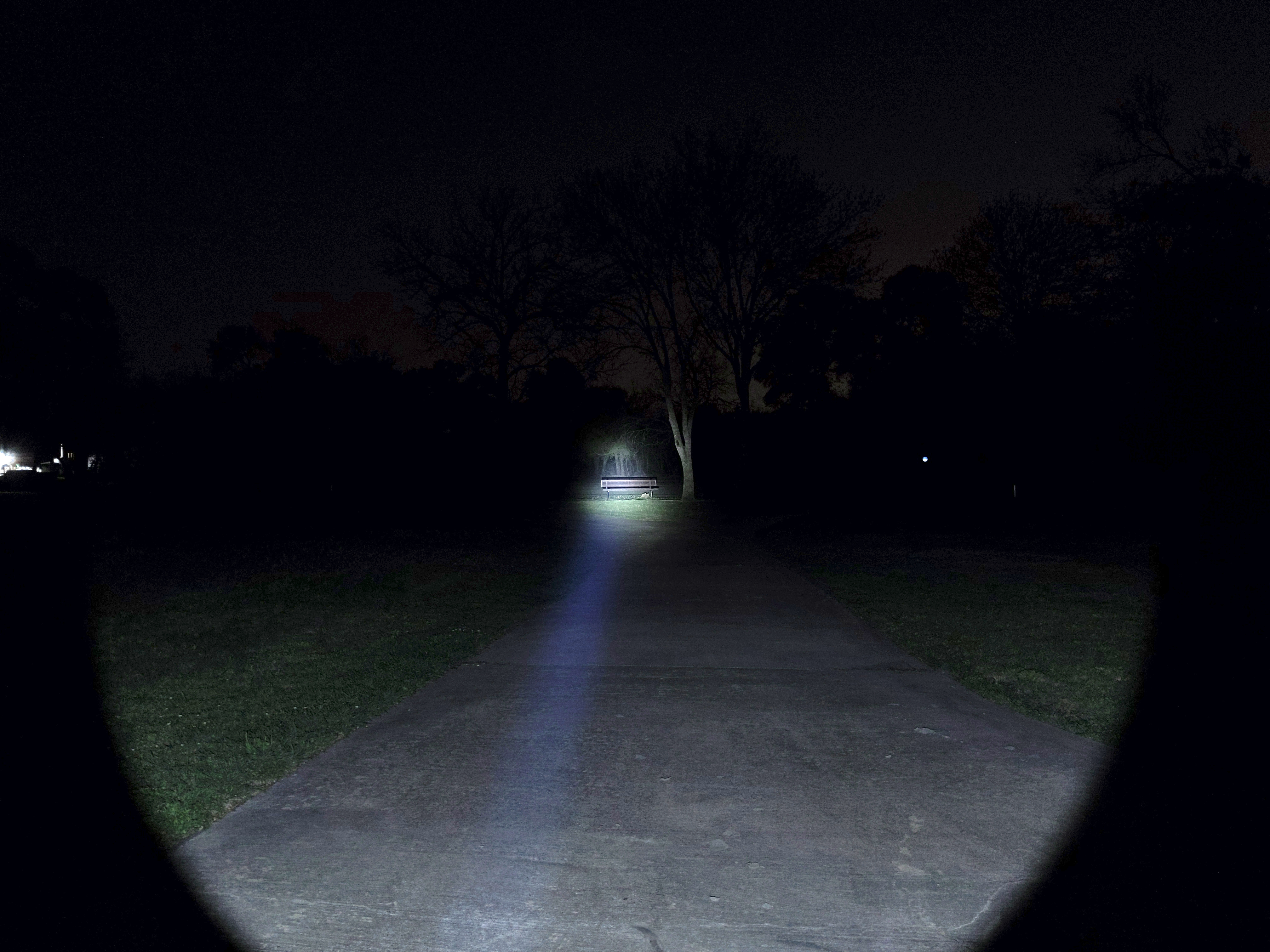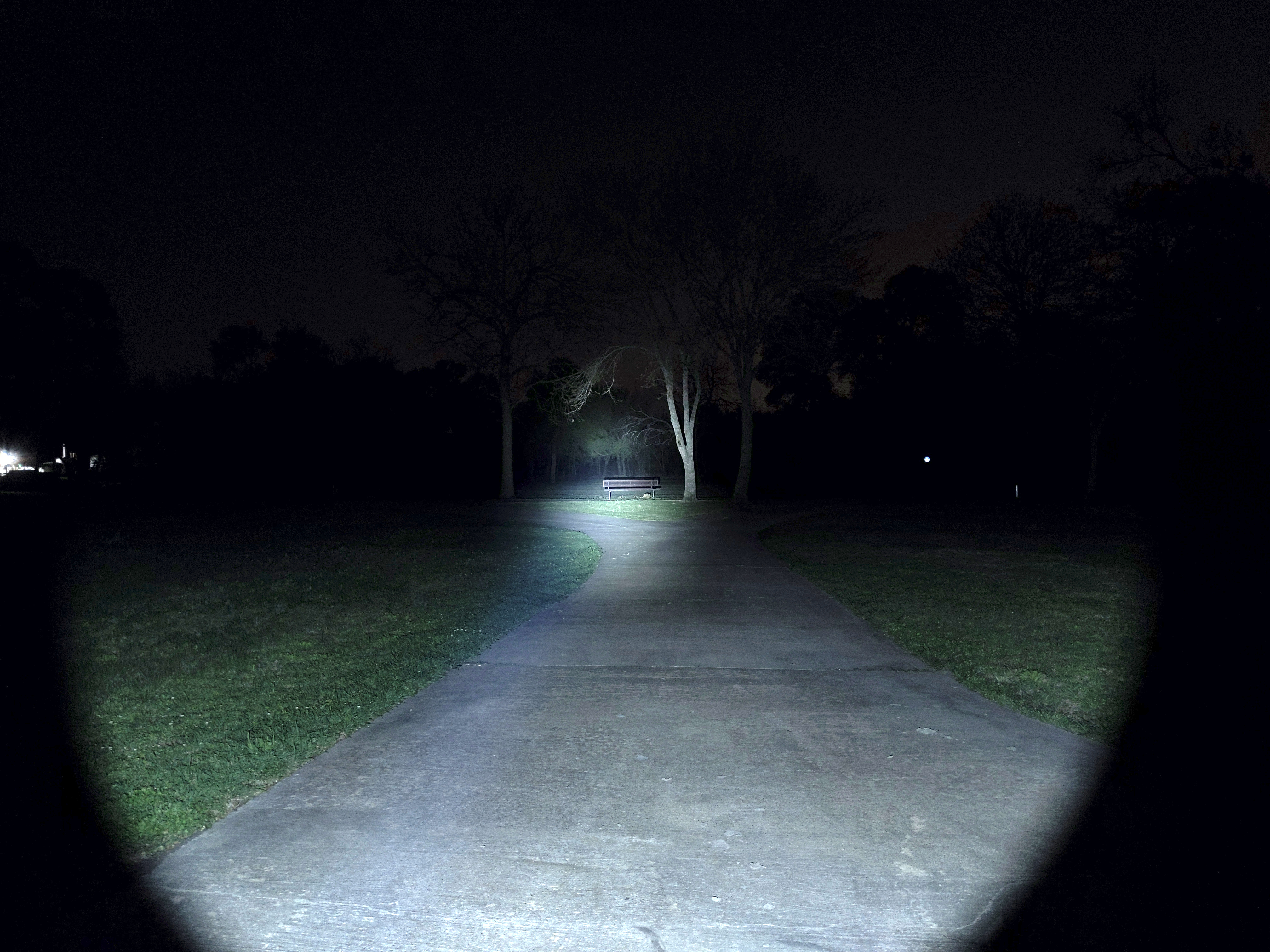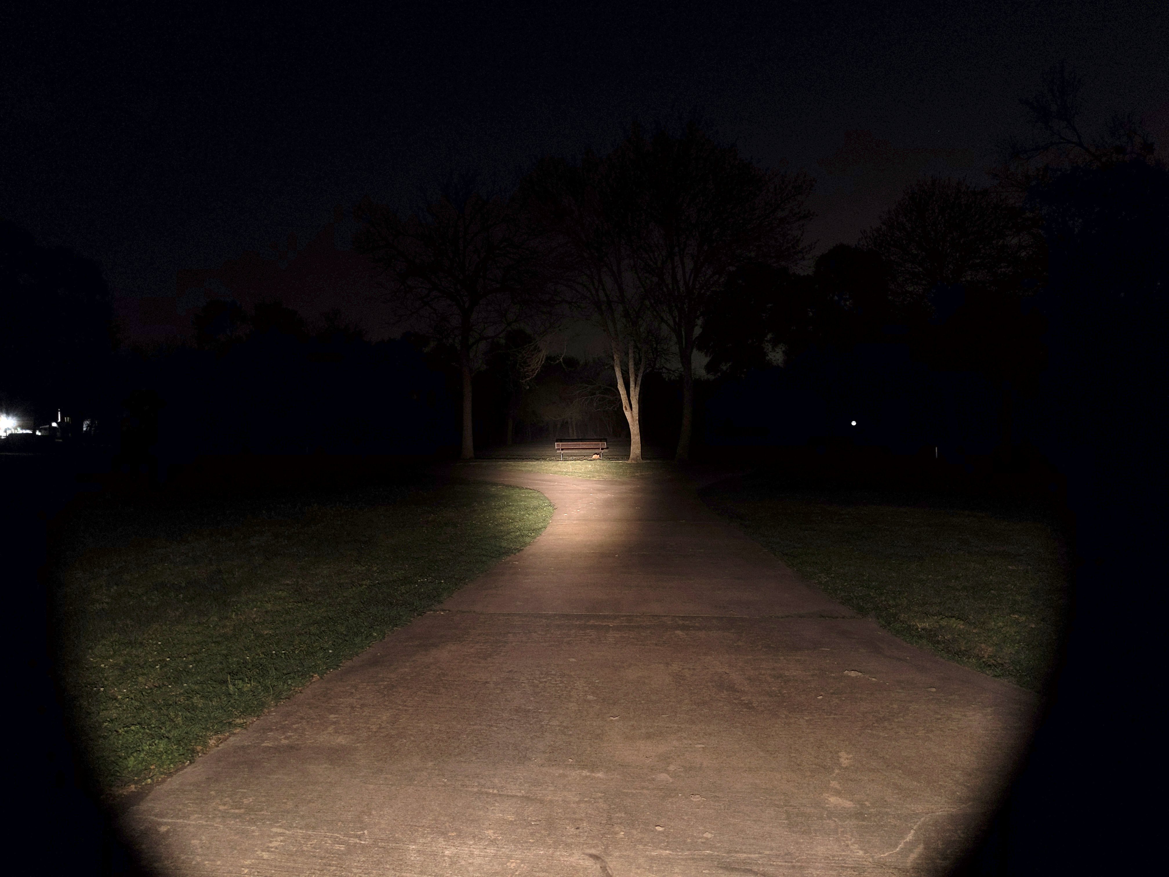 In the beamshots above, the trees where I’m aiming the hotspot are 175M away. In the beamshots below, the park bench where I’m aiming the hotspot is 42M away.