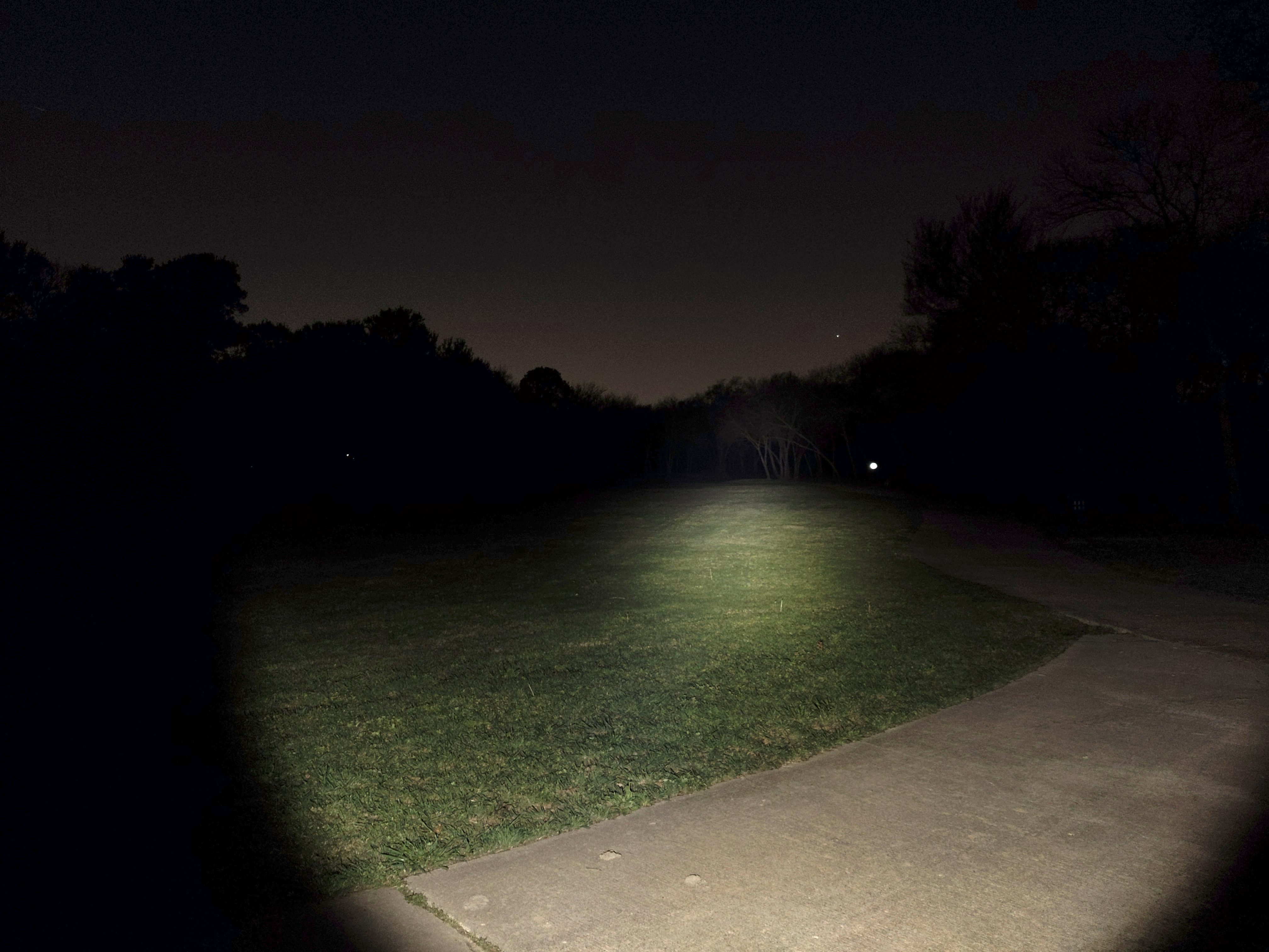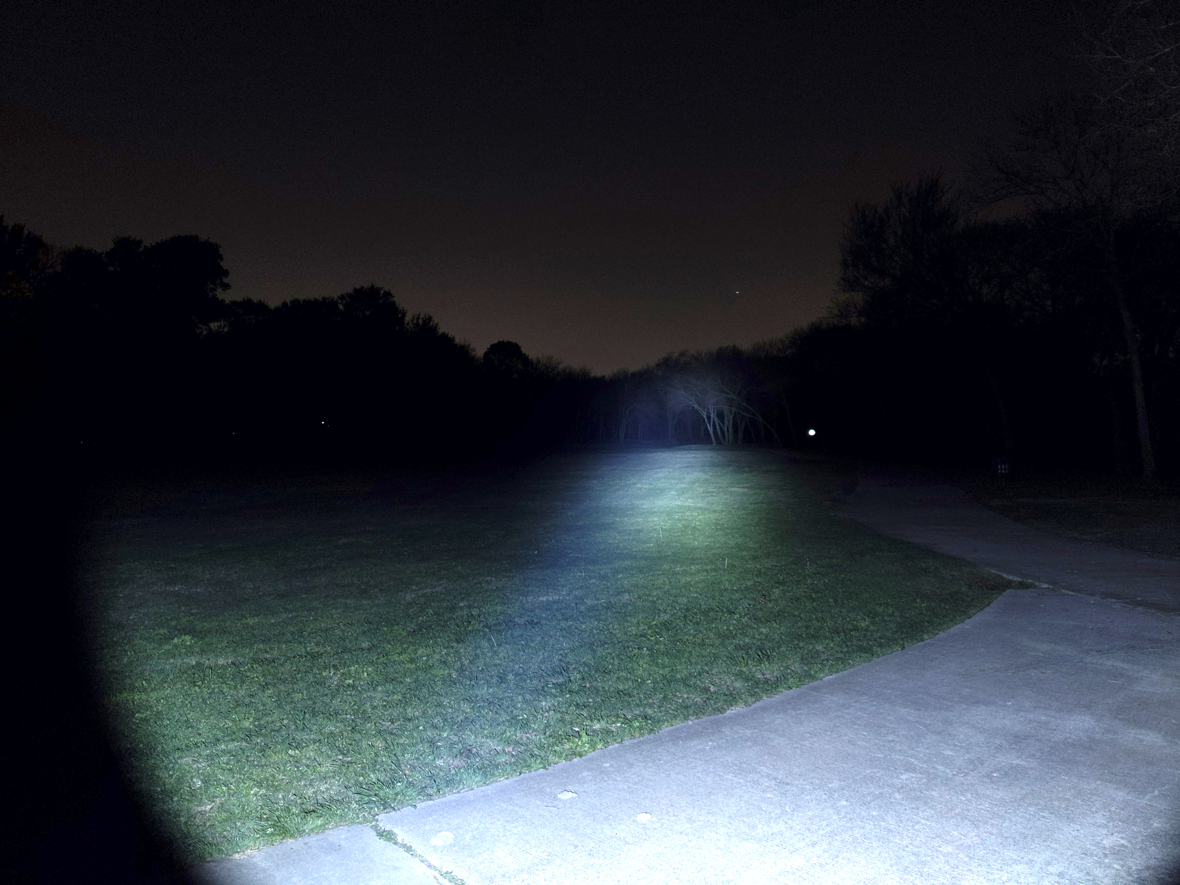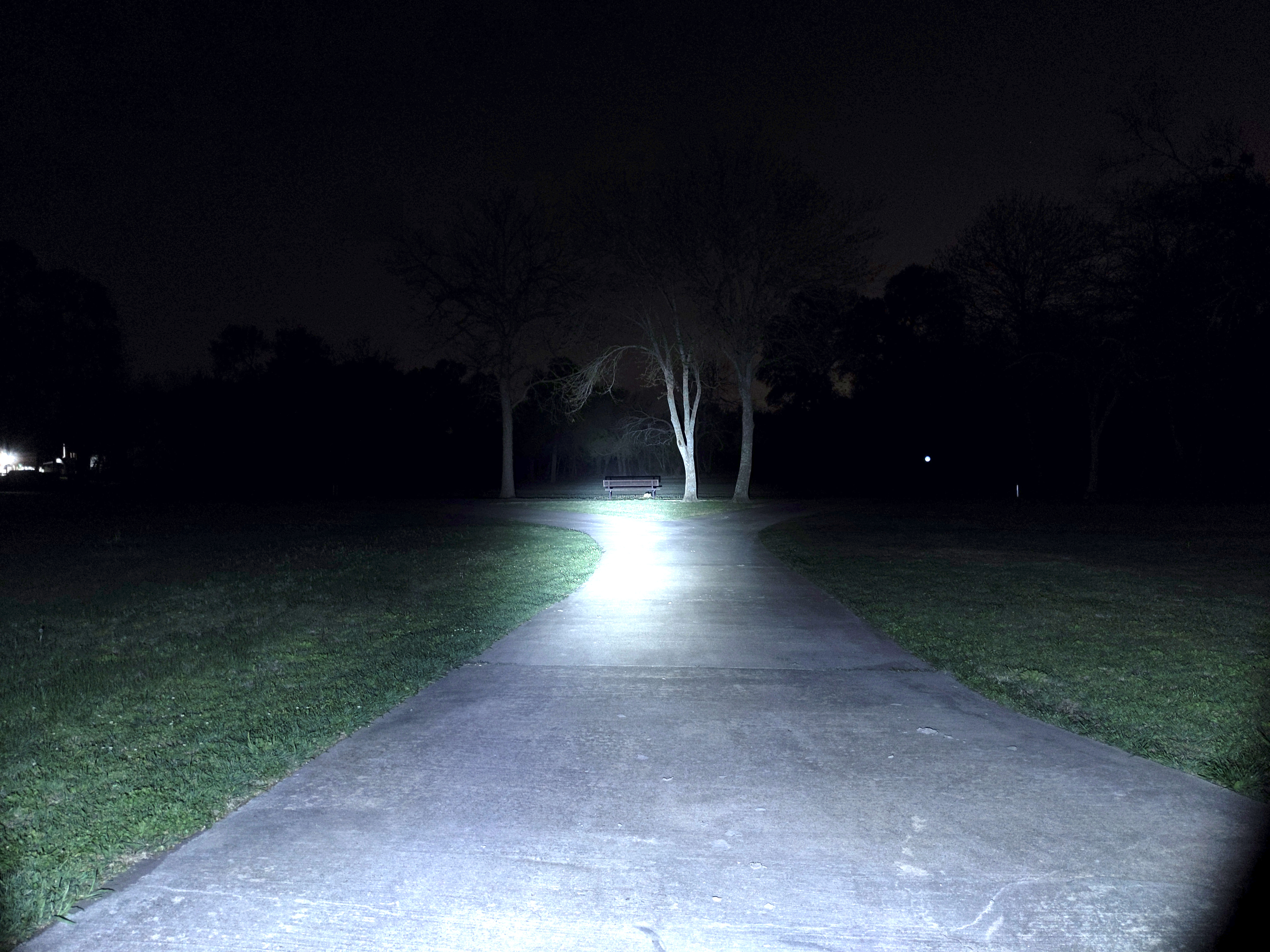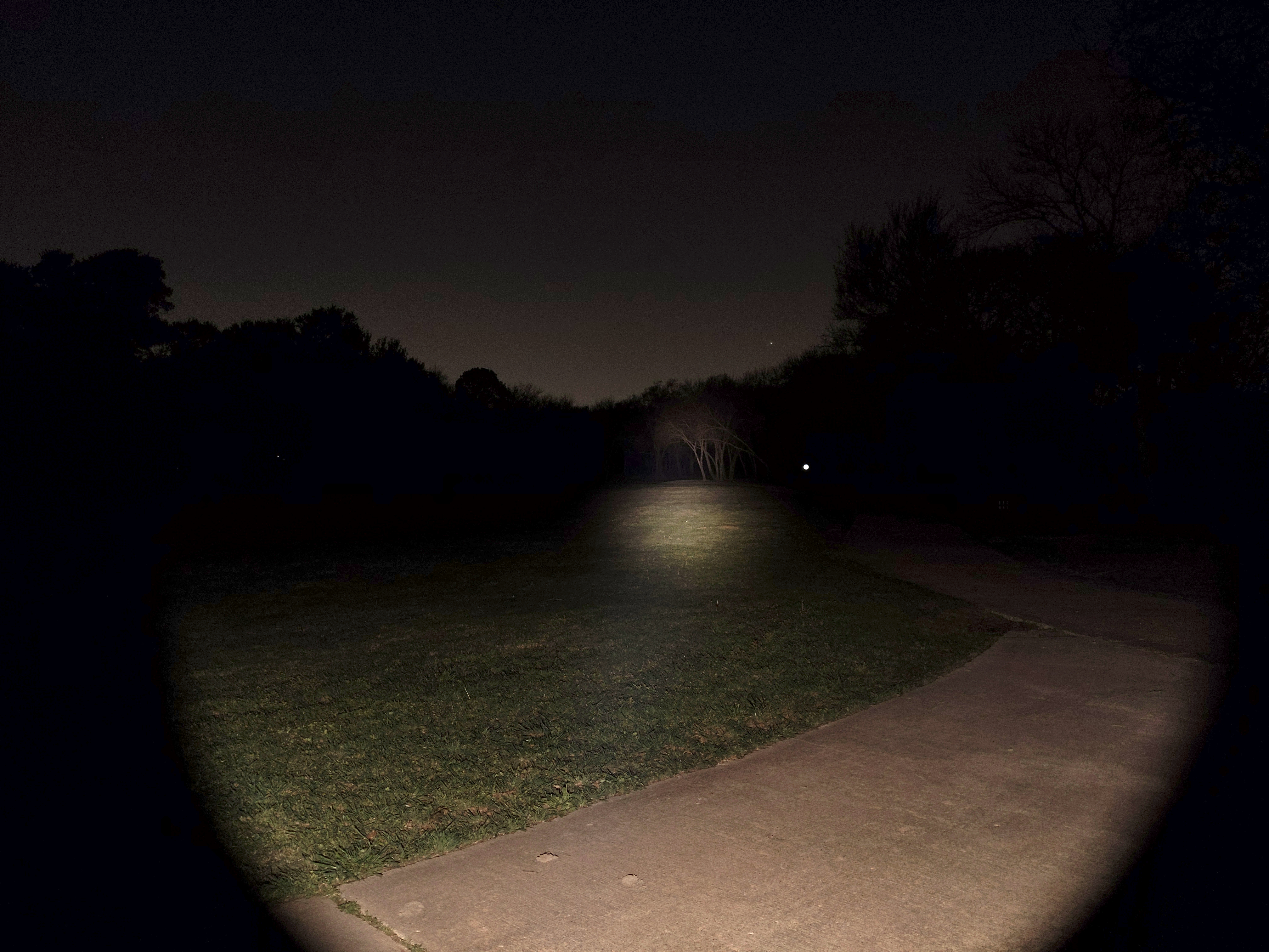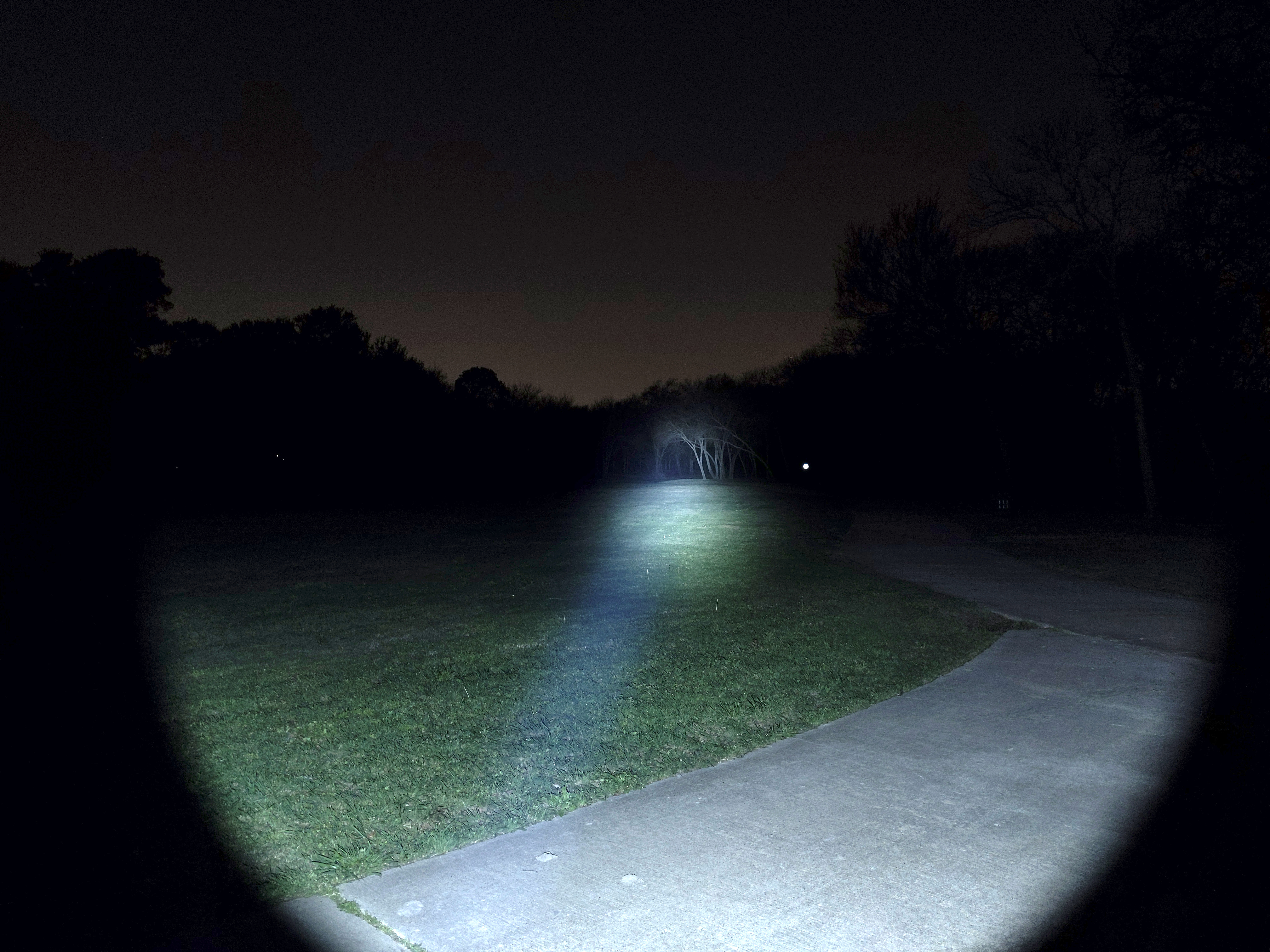 In the beamshots above, the trees where I’m aiming the hotspot are 175M away. In the beamshots below, the park bench where I’m aiming the hotspot is 42M away.
