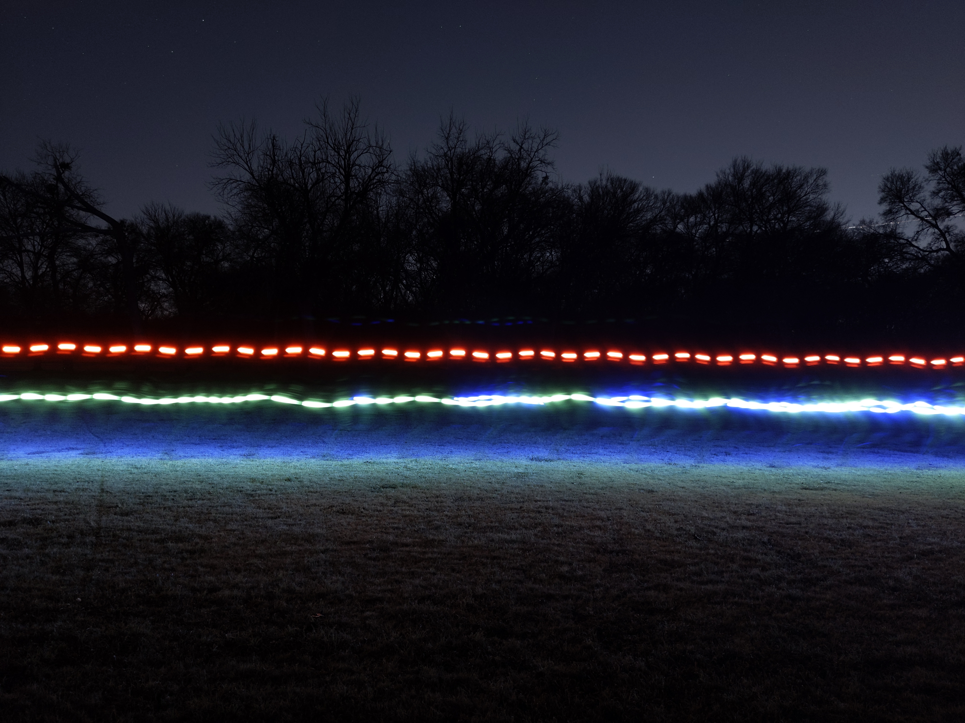 Diffusers: I’d be remiss if I didn’t mention Convoy’s excellent C8+ diffuser. I have one for each of my C8+’s and I get a ton of use out of them. They’re awesome for using the C8+ as a lantern outside, for illuminating a room, or even for doing light painting like these shots below of me running through a field with the Red, Green, and Blue versions.