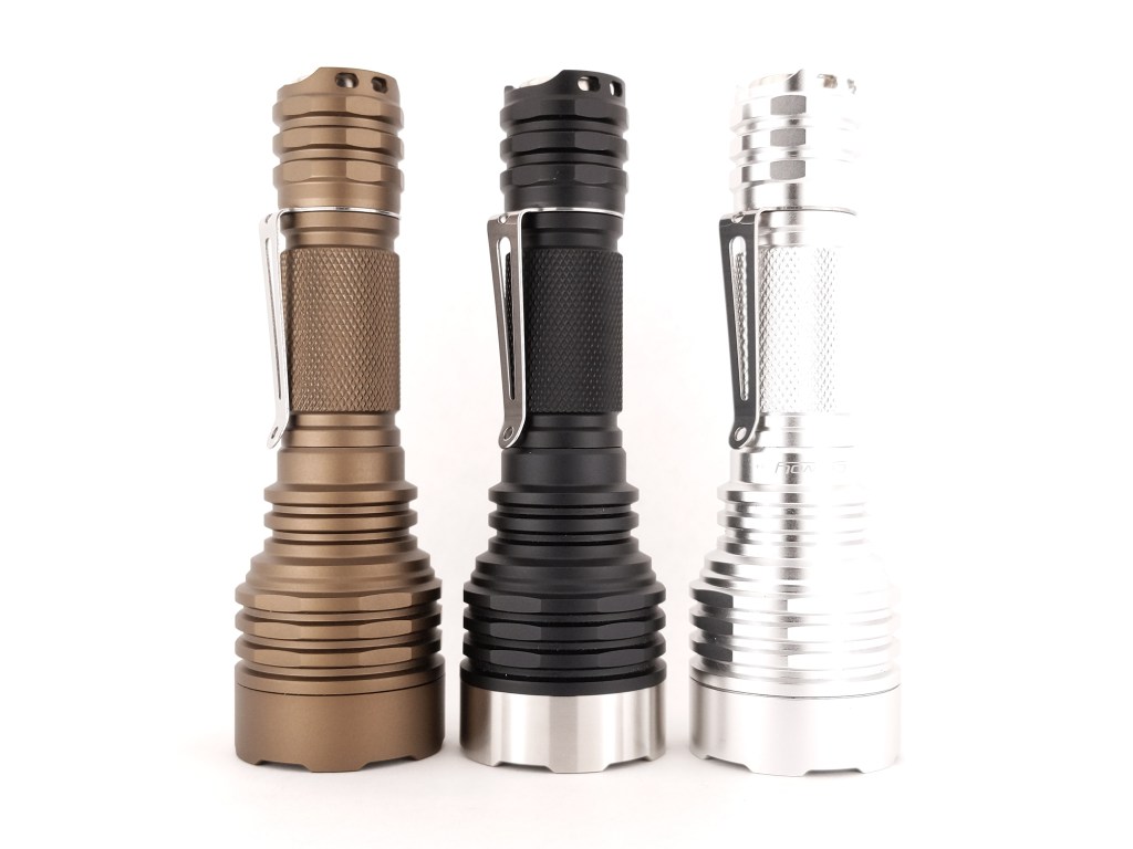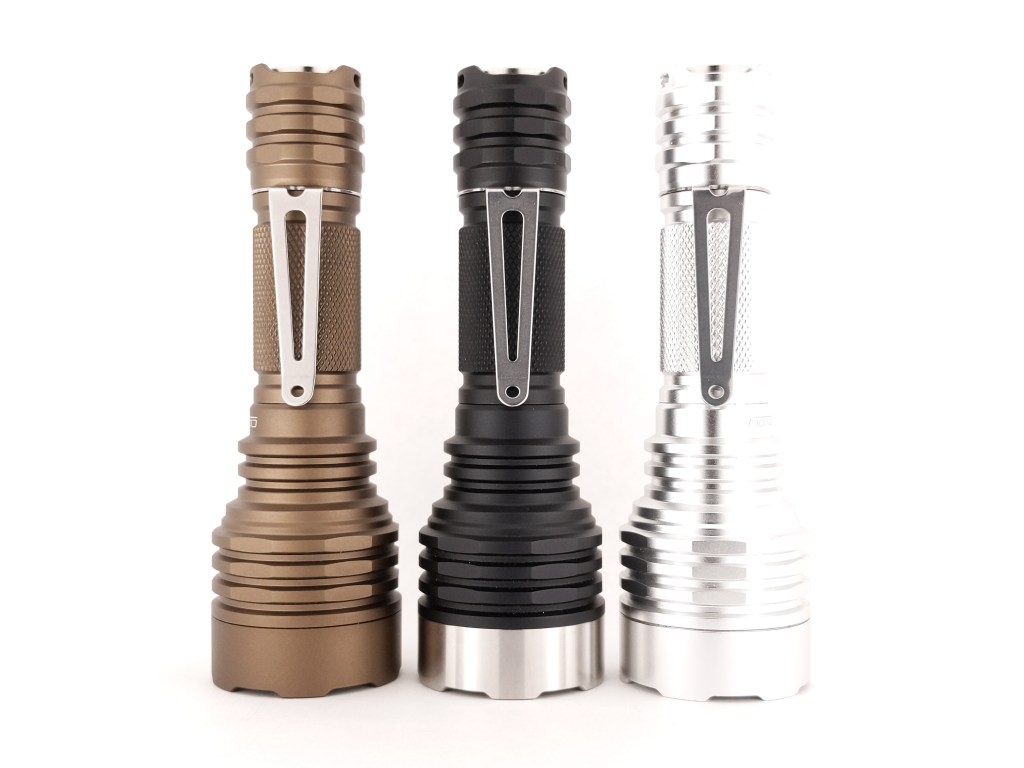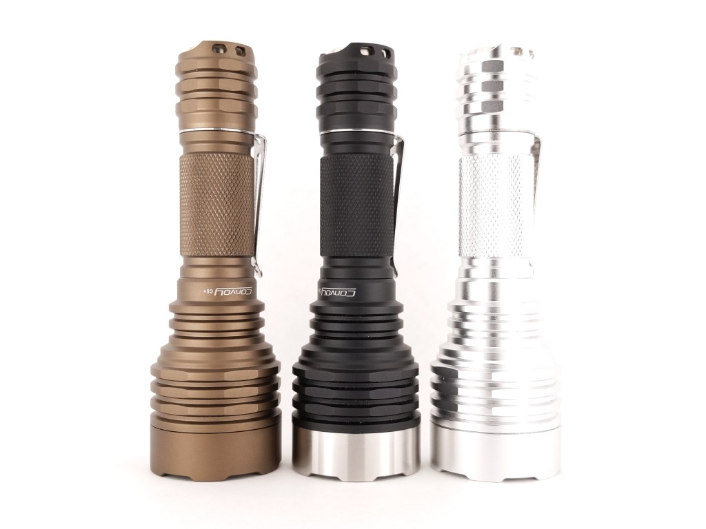 Convoy S2+: All the same LED, driver, and switch options as C8+ but in a 1″ tube. It’s available in even more body colors than C8+ and with multiple reflector/optic options to customize the beam.