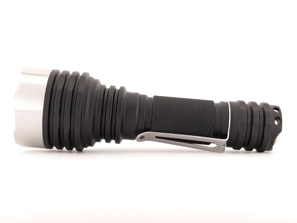 I opted to install Lumintop FW3A clips on all of my C8+’s (shown below). It worked without any modification on half of them, but the Black, Silver, Green, and Orange body colors required some fitting. Specifically, I carefully sanded the bottom of the tailcap little by little until the light worked properly and it held the clip firmly in place. The clips were very stiff so I bent them all out a little bit too. It’s a pretty big light for a pants pocket but it’s doable. I think these clips add a lot of character.