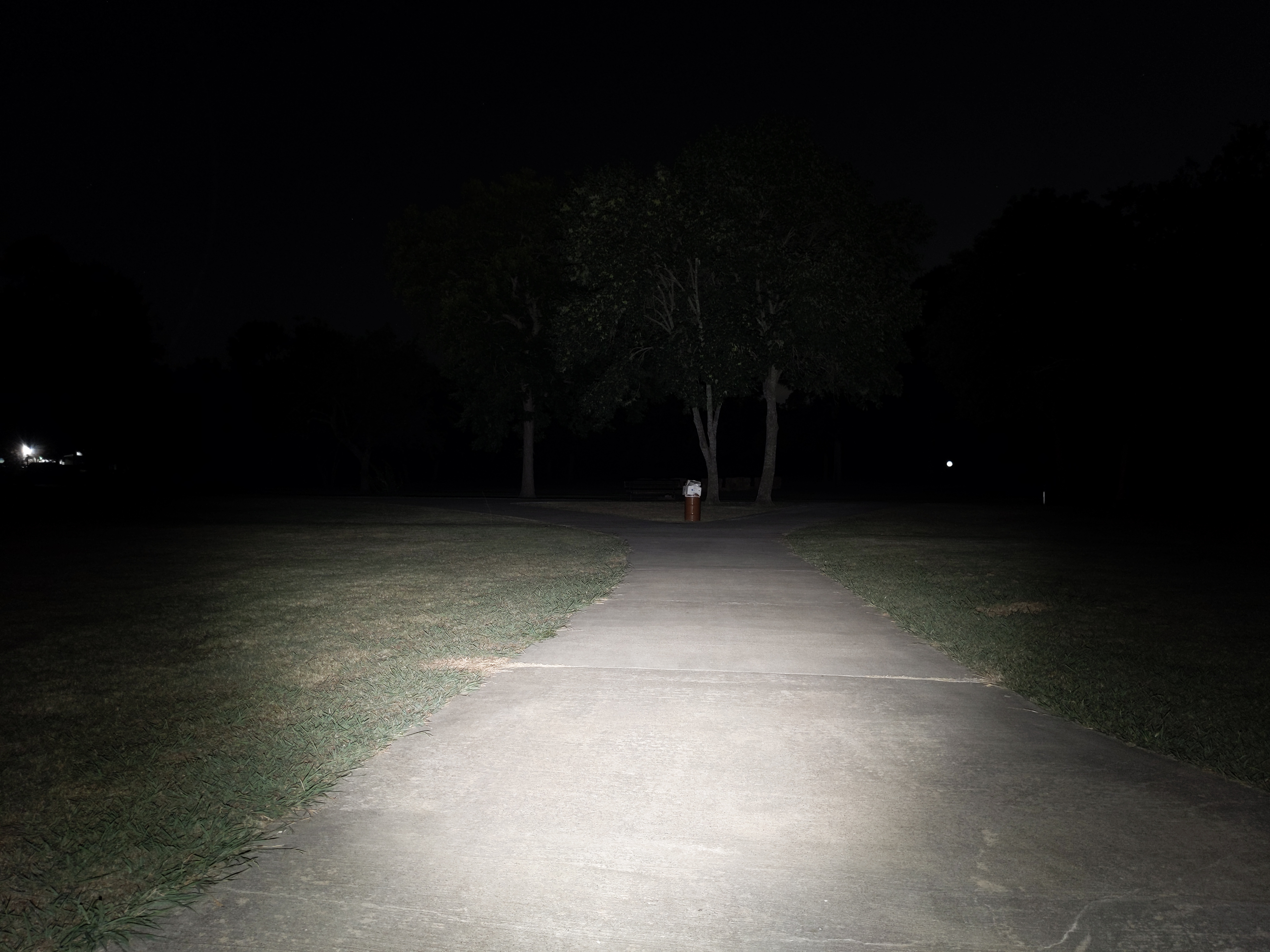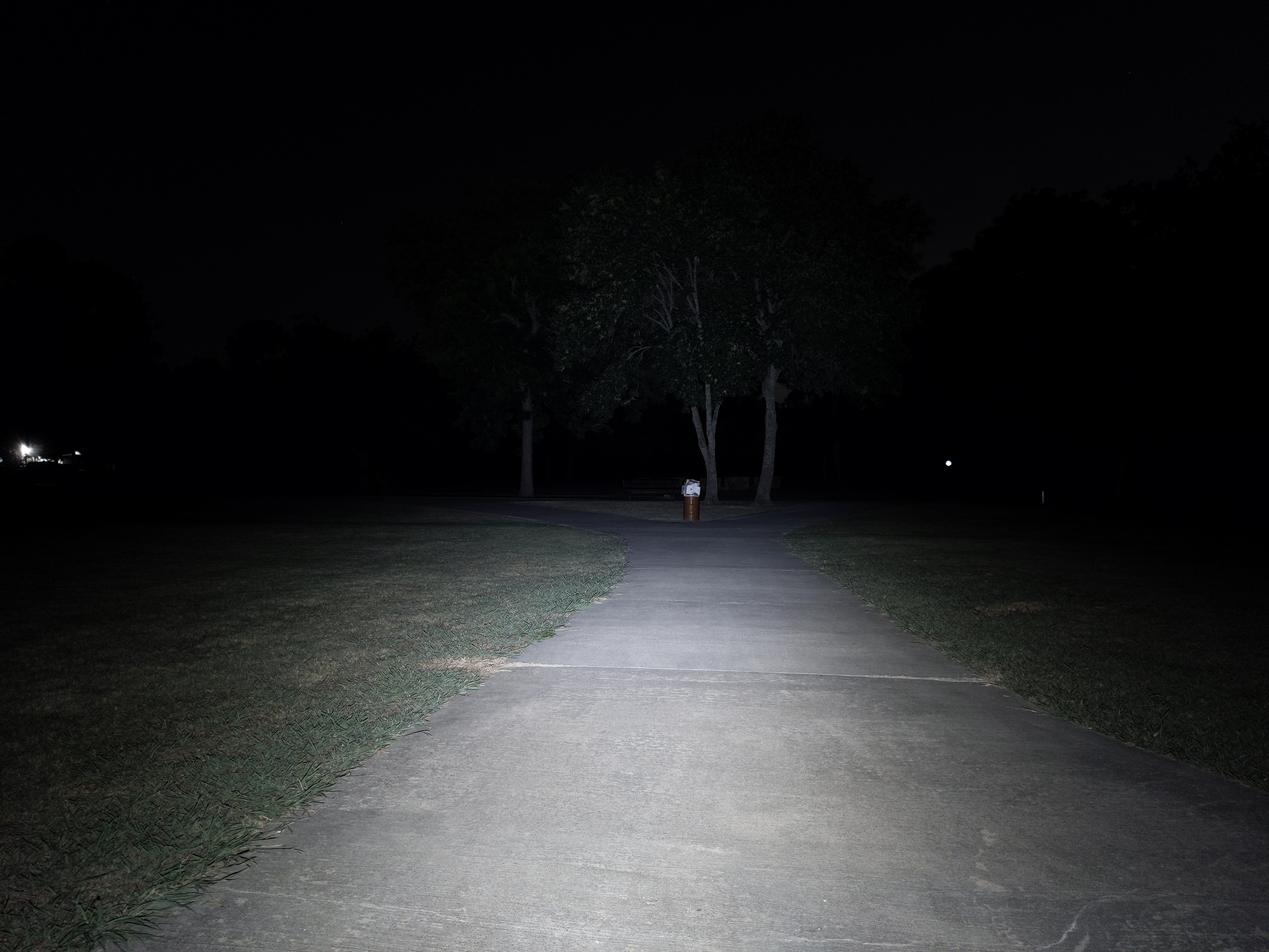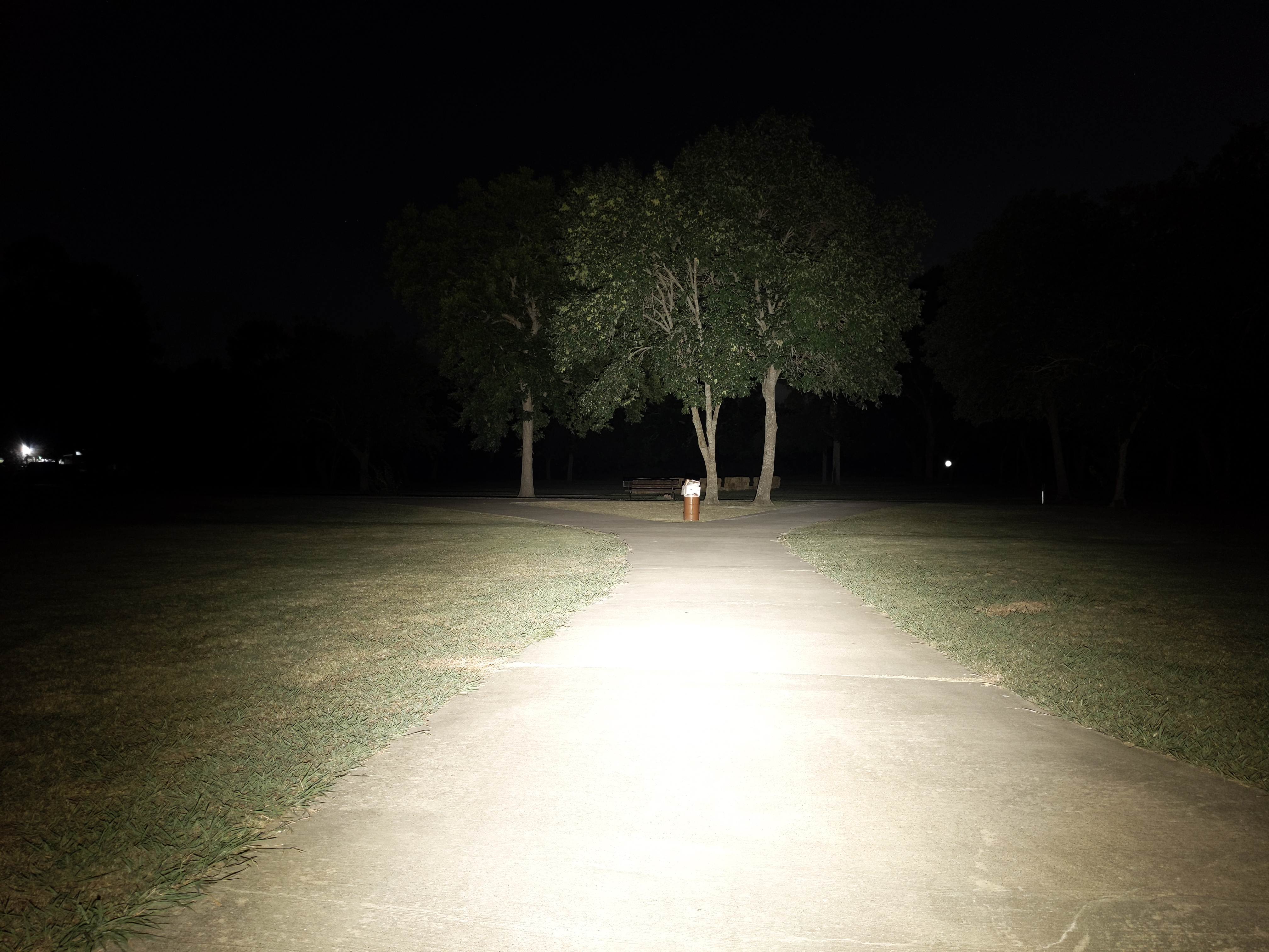 In the beamshots above, the trees where I’m aiming the hotspot are 175M away. In the beamshots below, the park bench where I’m aiming the hotspot is 42M away.