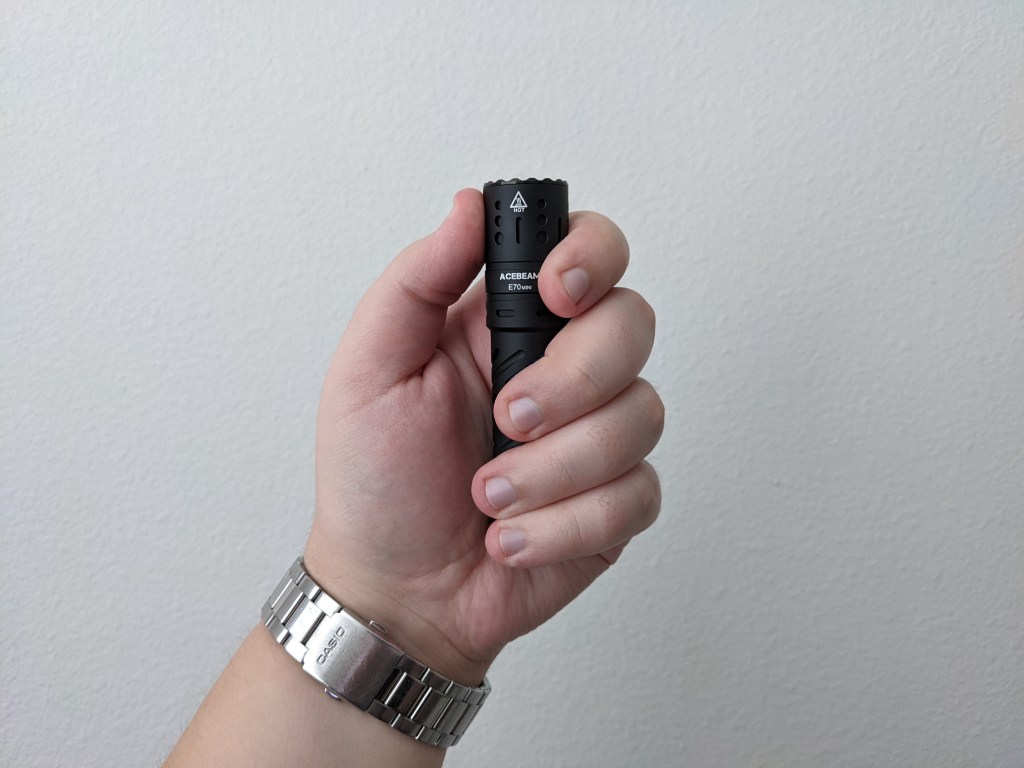 This may not be a problem for some users, because it’s relatively easy to get used to it. For others it’s one of the most egregious UI design sins. If you’re like me and you use a wide variety of lights, you’ll have to re-learn the UI every time you switch to/from a different light because you’ll find yourself turning another light on Turbo when you don’t mean to, or find yourself fumbling with E70 Mini and wondering why it won’t turn on. I really wish Acebeam had used a more typical UI here and tackled accidental activation by using a different switch design.