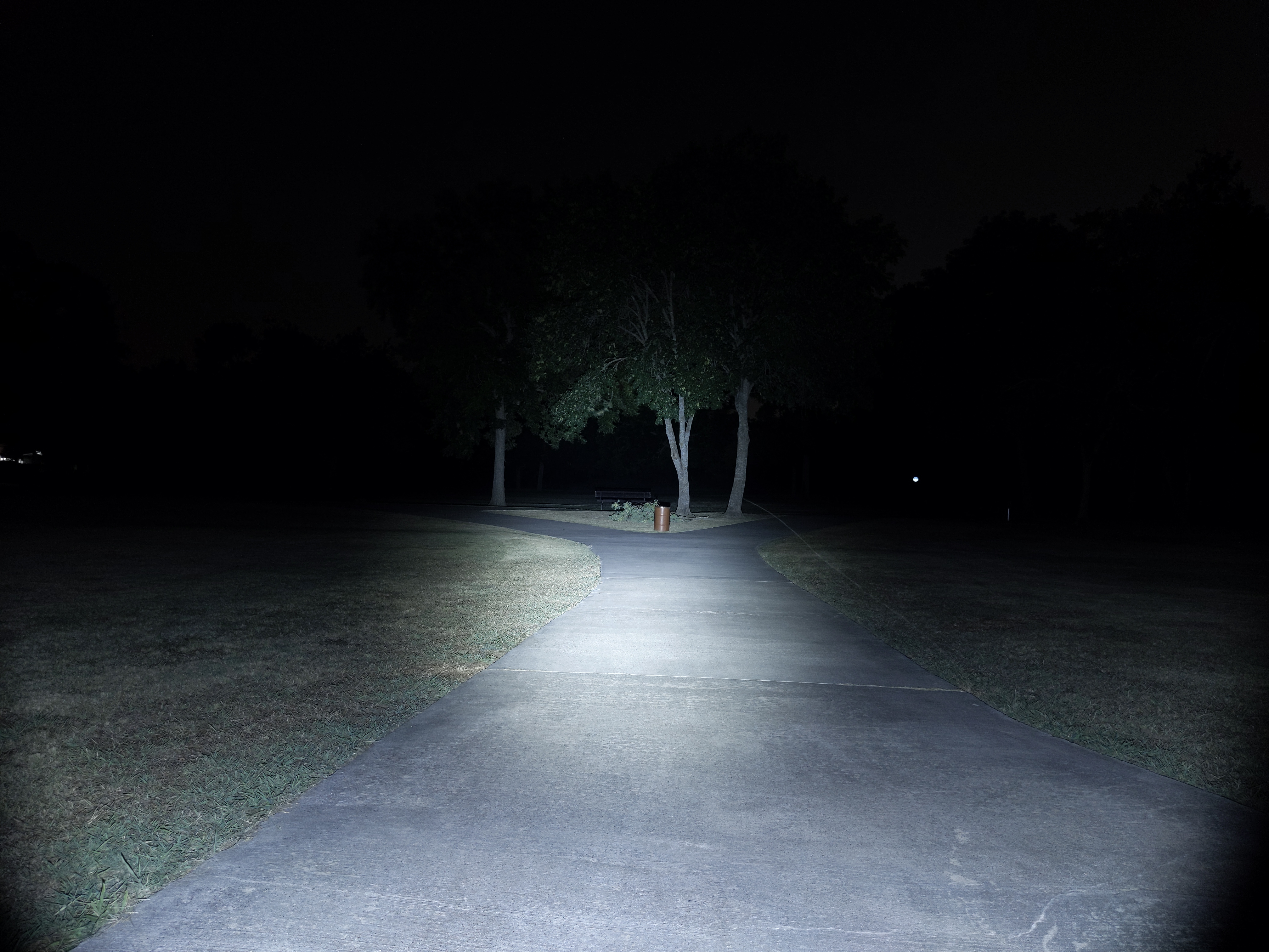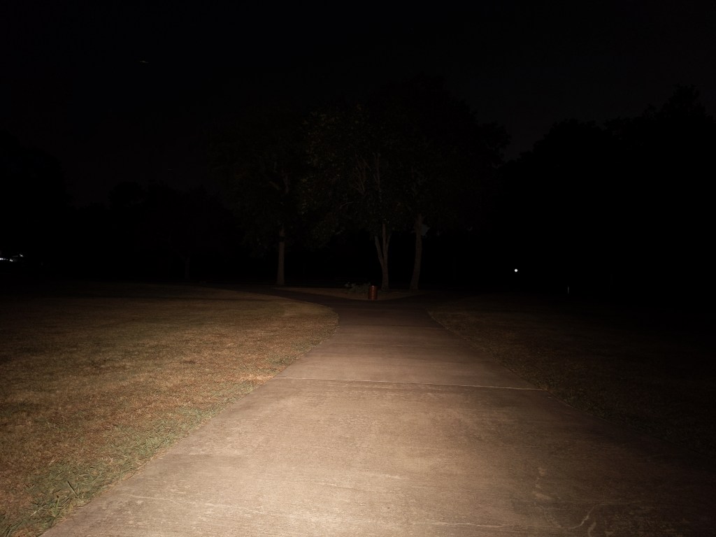 In the beamshots above, the trees where I’m aiming the hotspot are 175M away. In the beamshots below, the park bench where I’m aiming the hotspot is 42M away.