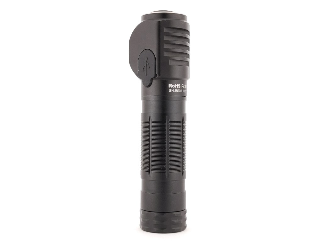 “Thrower” has an electronic switch and I have mixed feelings about it. I like that it’s clicky and that it’s backlit to show charge status. I don’t like that it’s very large and placed on the end of the head instead of the side. Using mechanical lockout when this light is in your pocket or bag may be necessary to prevent accidental activation. Placing the switch on the side of the head would be much better for use as a headlamp, and that’s the main use case for this light.