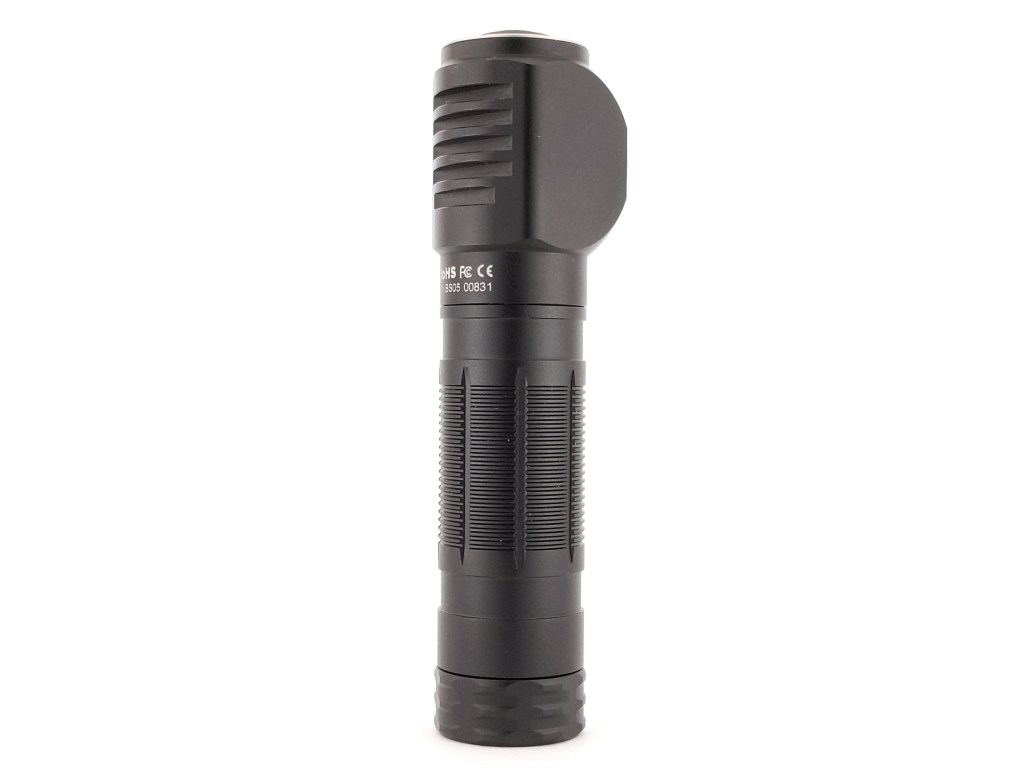 In-Hand ergonomics are good if you want to use “Thrower” as a handheld light. When held in a pistol grip, you can use your thumb to actuate the button and the narrow beam points nicely.