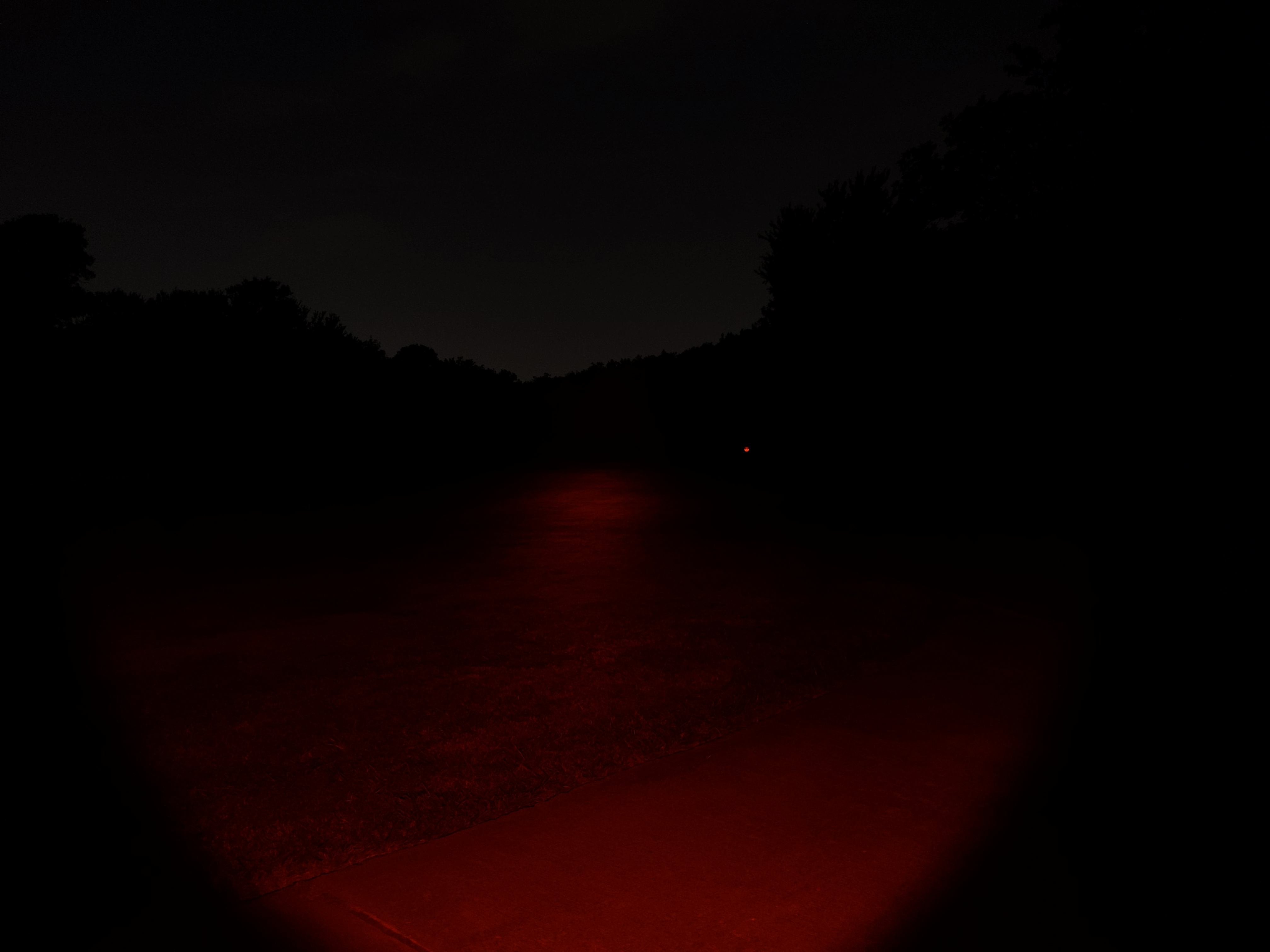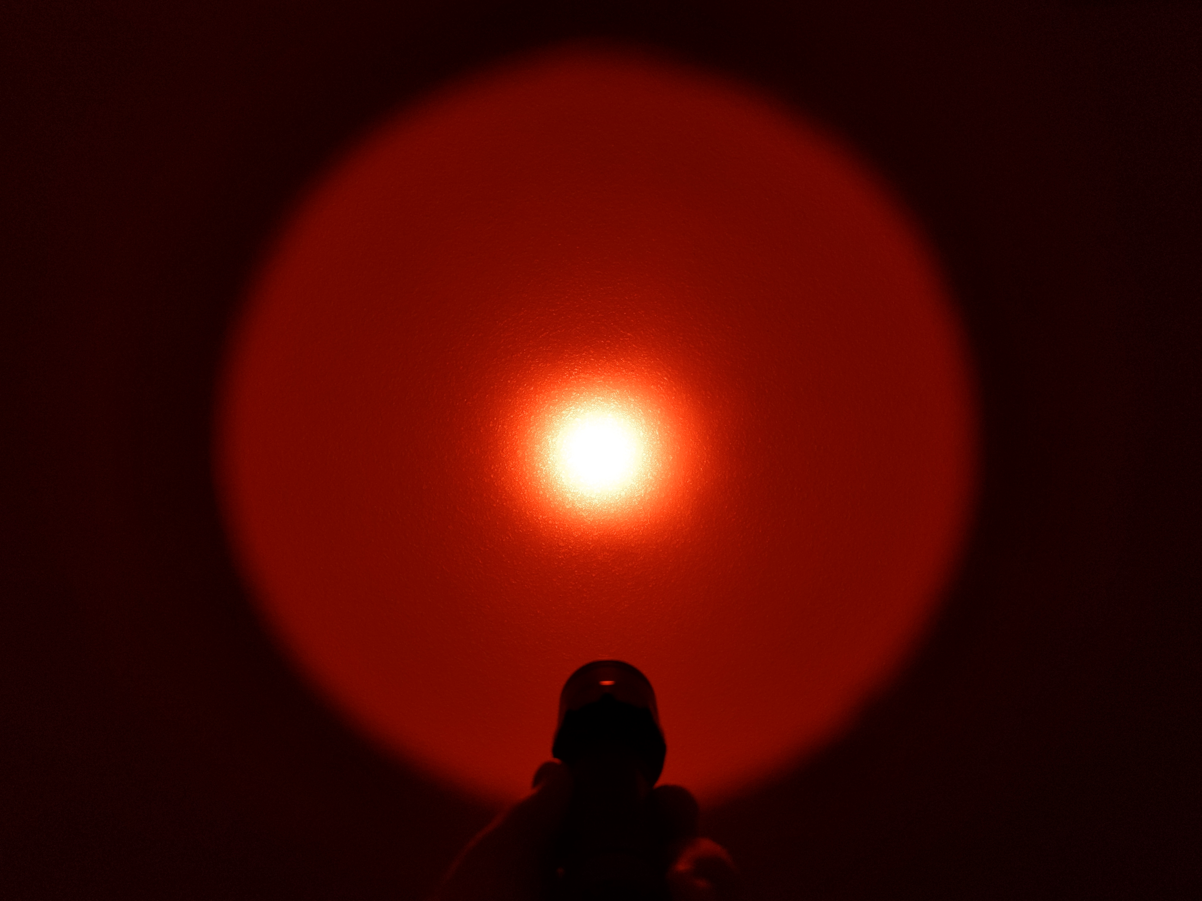 The beam is clean with no harsh transitions or artifacts. It’s a bit narrow but that helps focus the light where you want it. It’s a good beam for a general purpose / duty light like this. Notably, the red beam is even narrower than the white beam so you’ll get great throw in red mode. This is probably the biggest selling point of this light since no other white & red light I’ve been able to find can match the red throw from P5R.