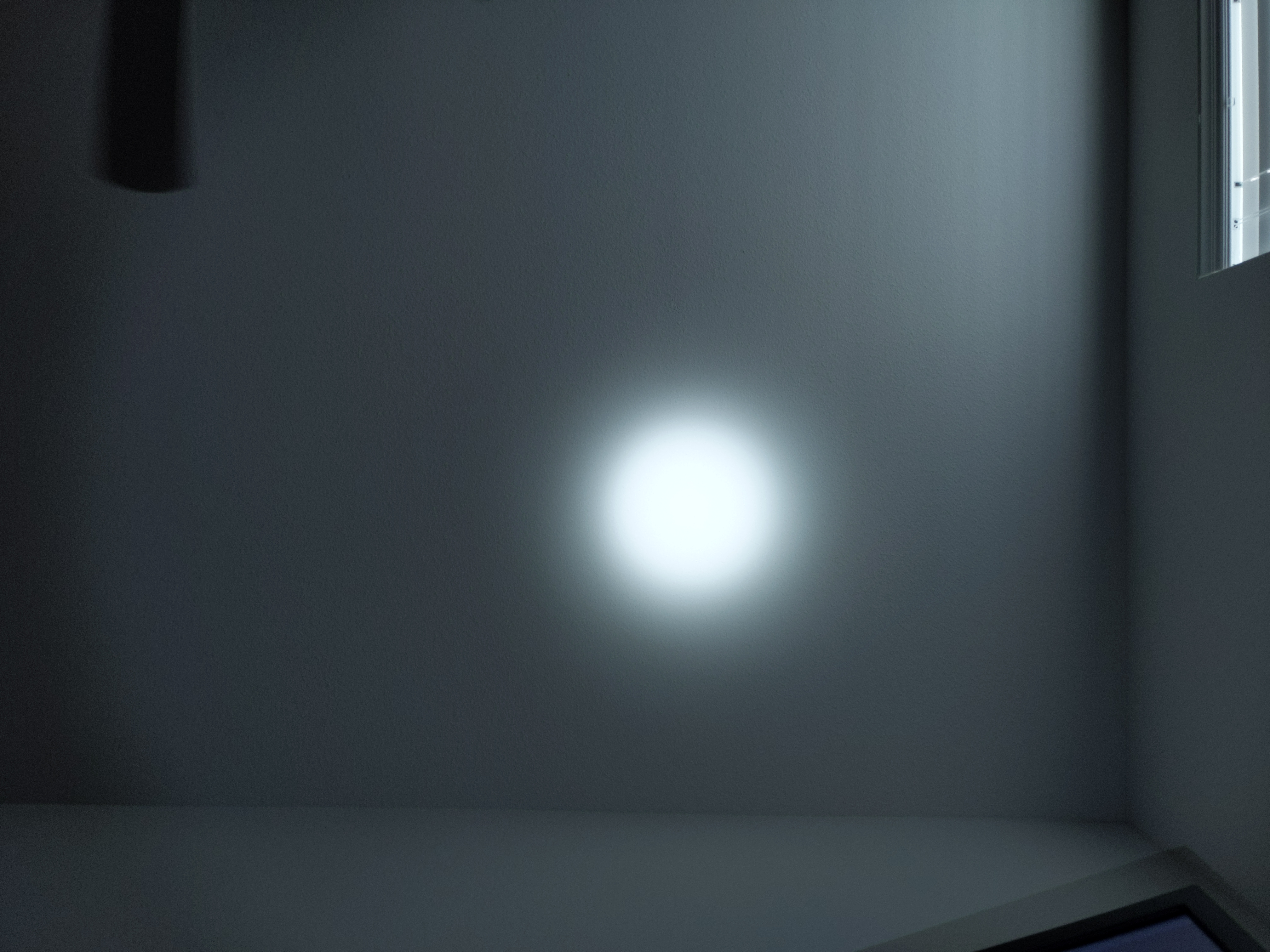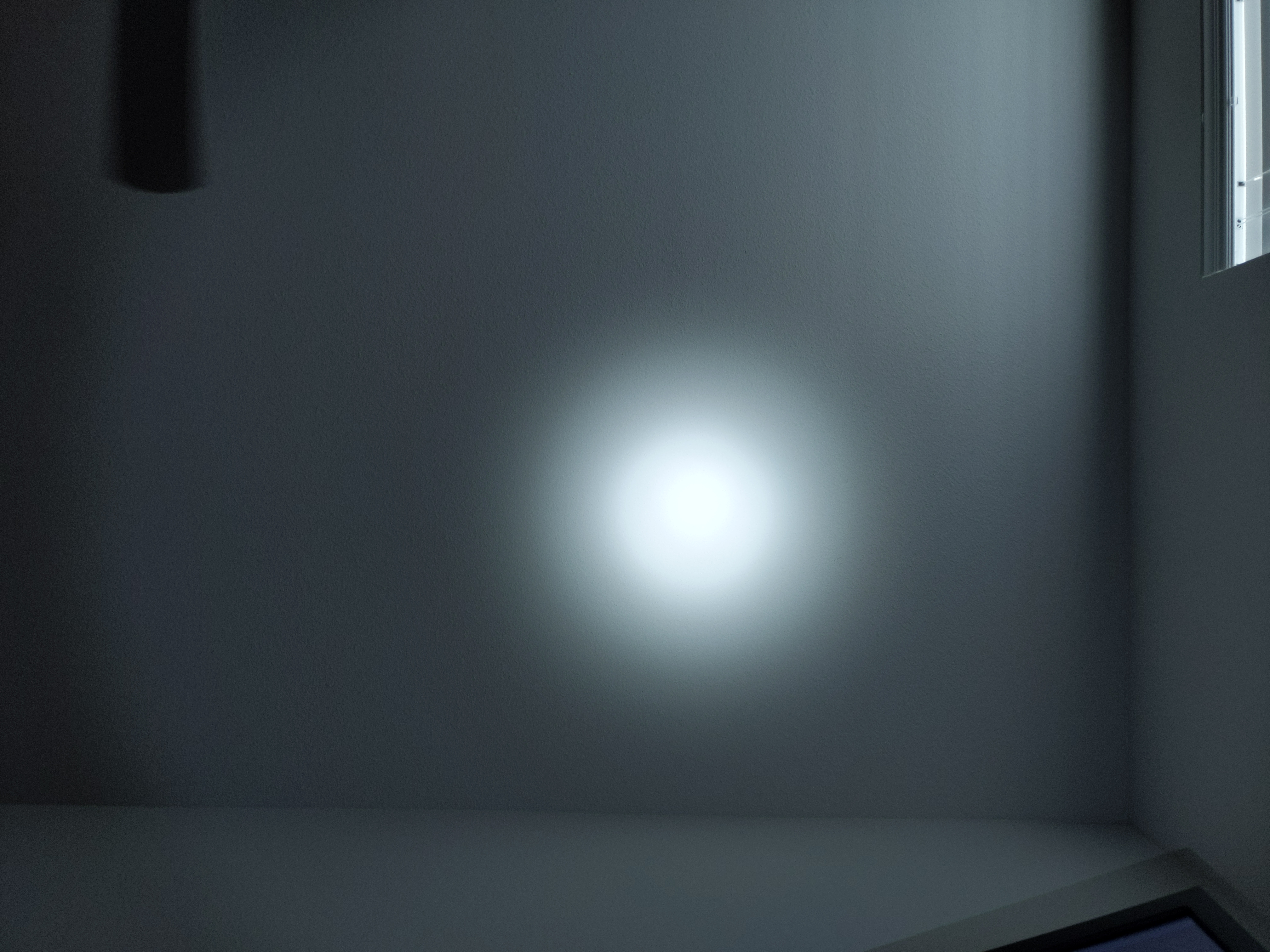 Below are some quick indoor beamshot comparisons between the stock reflector, new perfectly-sized kaidomain reflector, and a Thrunite Thrower reflector. I didn’t do any candela measurements for the Kaidomain reflector, but I got 40kcd from the Thrunite reflector and 24kcd from the stock reflector. The Kaidomain reflector appears to be somewhere in the middle, but closer to the Thrunite reflector.