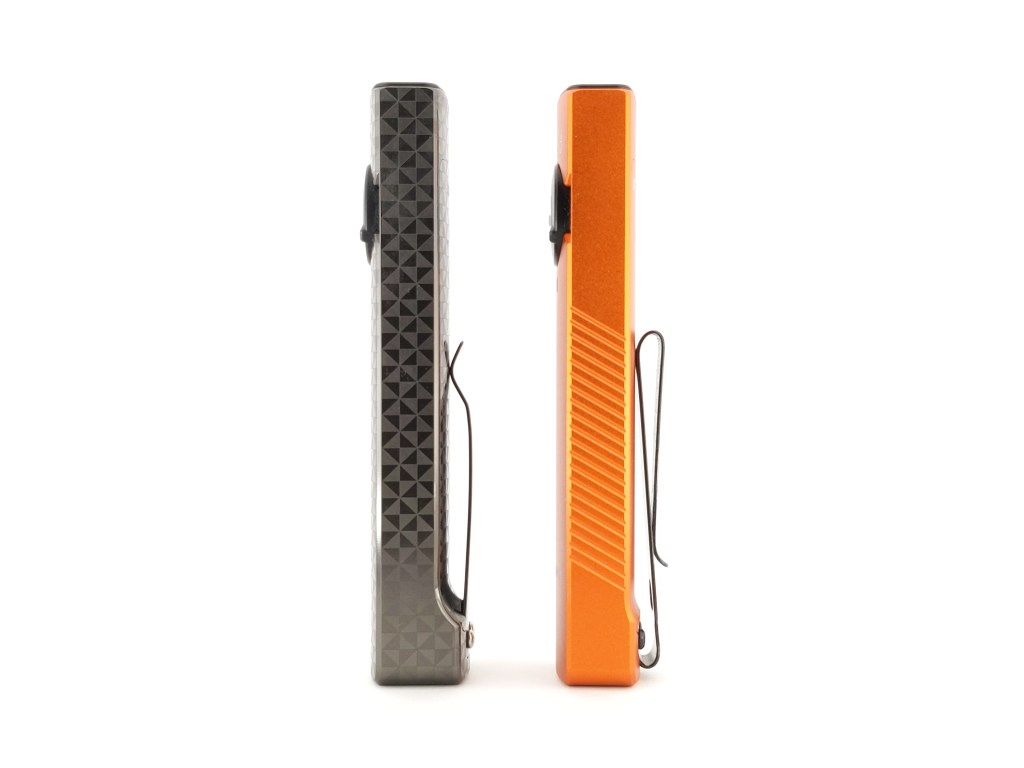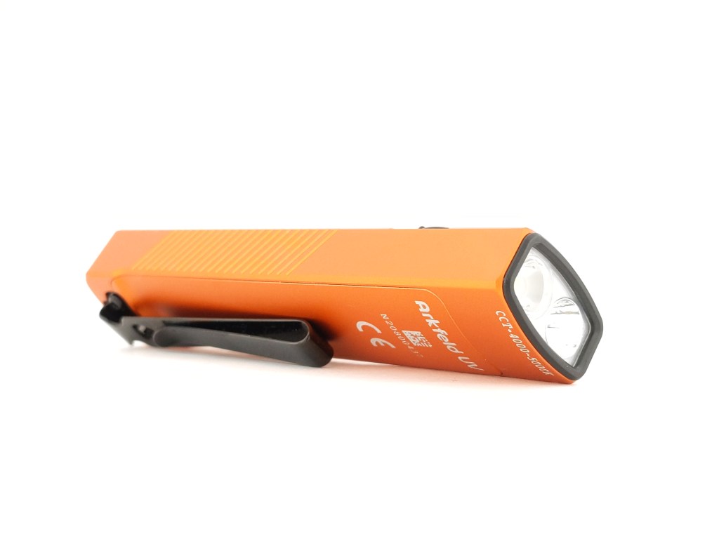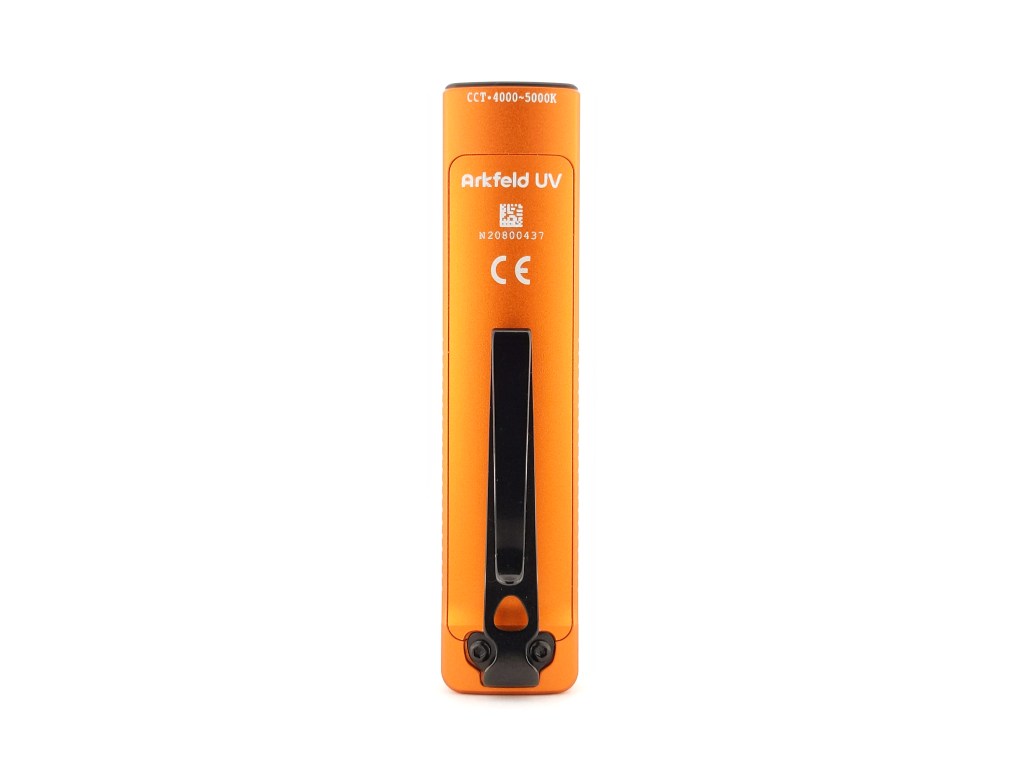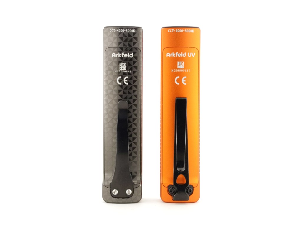 Arkfeld UV carries even better than the original Arkfeld. Olight (almost) removed the flare at the tail and the clip has been swapped to a new bidirectional deep carry clip. It carries a lot deeper in the pocket and feels even less bulky with the tail flare (almost) removed. It also allows you to clip the light to the brim of a hat and use it as a headlamp. This new clip is one of my favorite changes they made.
