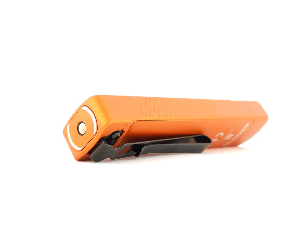 Streamlight Wedge: narrower and longer, even more sleek than Arkfeld, looks like an OTF knife, does not flare at the tail, has standard USB-C charging port but it’s exposed so debris can get in, unique lever switch, poor UI for EDC (only two modes, lowest 300lm), no magnetic tailcap, similar price point, supports common aftermarket pocket knife clips, no UV