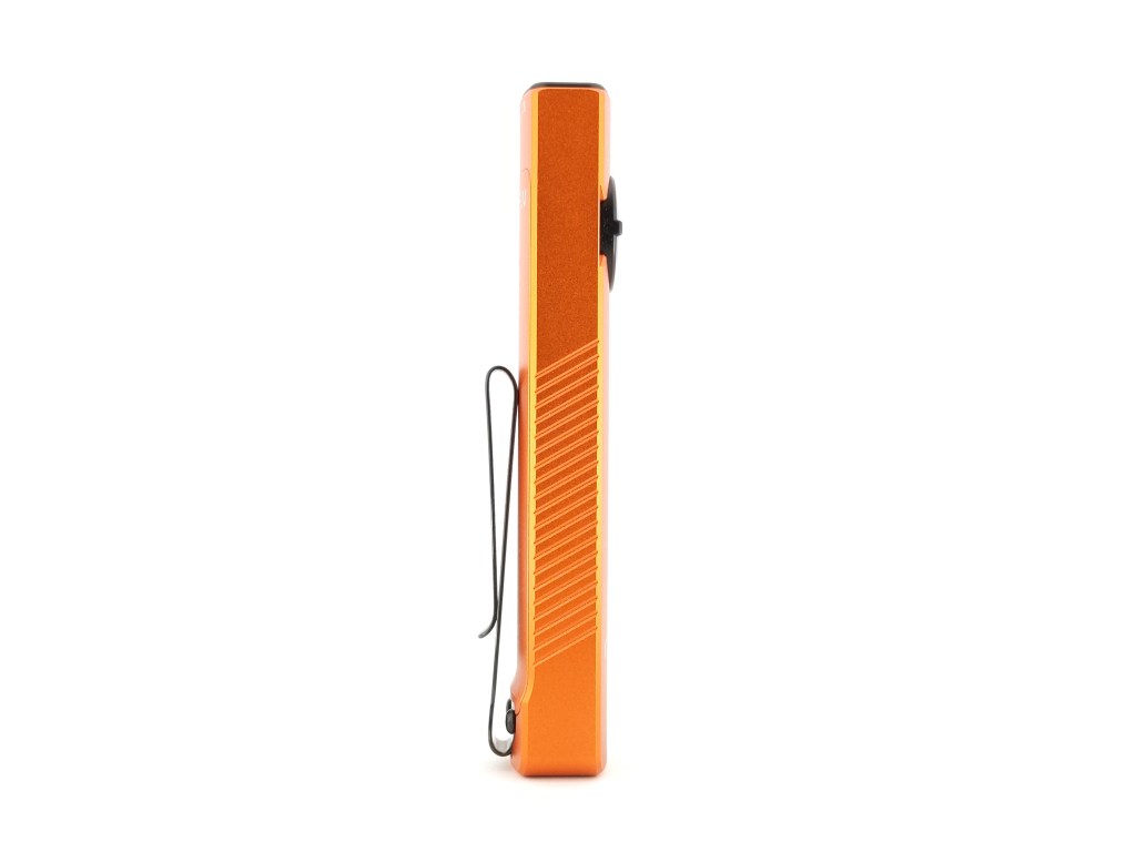 Arkfeld UV’s design is an iteration on the original Arkfeld design and it still looks like an old apple TV remote. Olight has added some milling on the sides for added grip and has made the flare-out at the tail much smaller. It’s a substantial improvement but it’s so close to being perfectly flush that I wish it were actually perfectly flush and had no flare-out at all. There’s also a new pocket clip which I’ll discuss later.