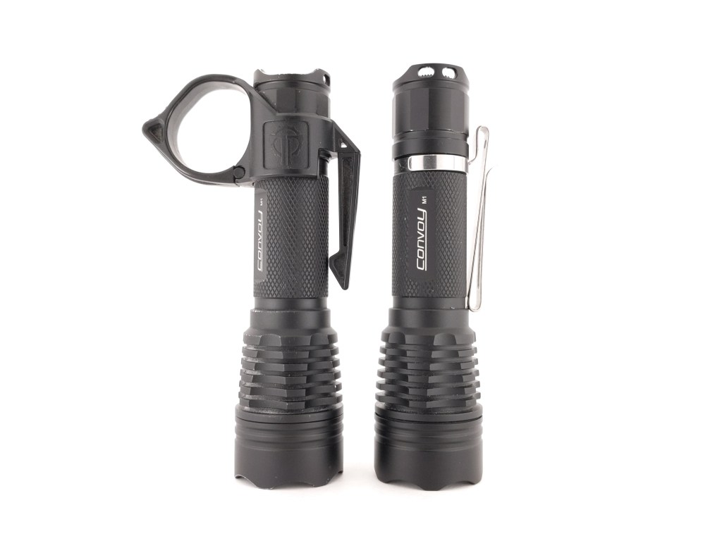 My two favorite clips for Convoy M1 are Thyrm Switchback 2.0 (or a knockoff) and the Wurkkos/Sofirn TS21/IF22A clip. The switchback will work without modification but it sits a little higher than I like. For my other M1 I modified a switchback and glued it to the tailcap to sit at the perfect height. Both clips are shown below.