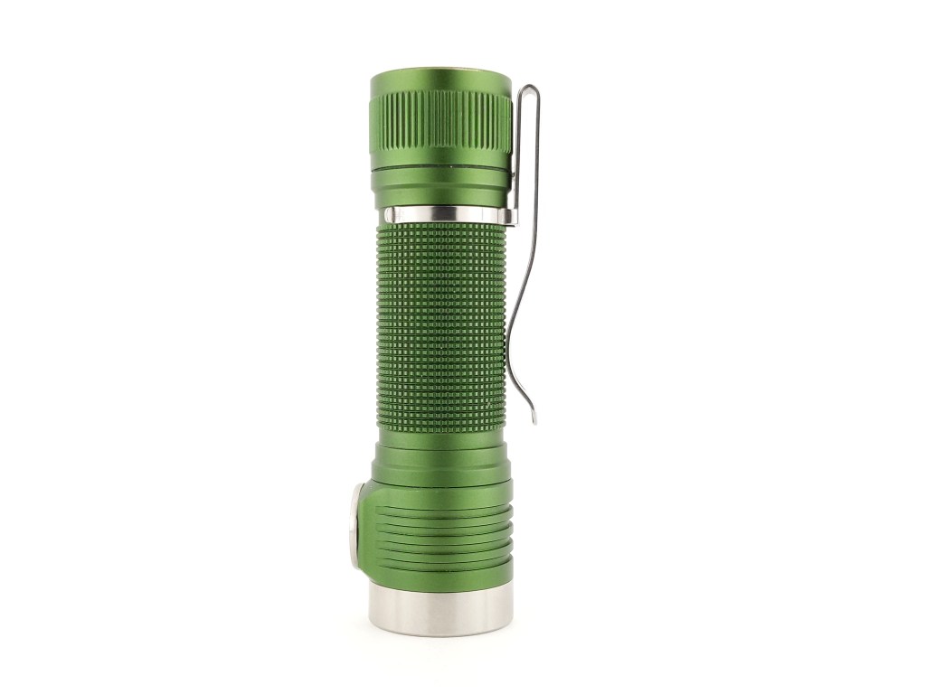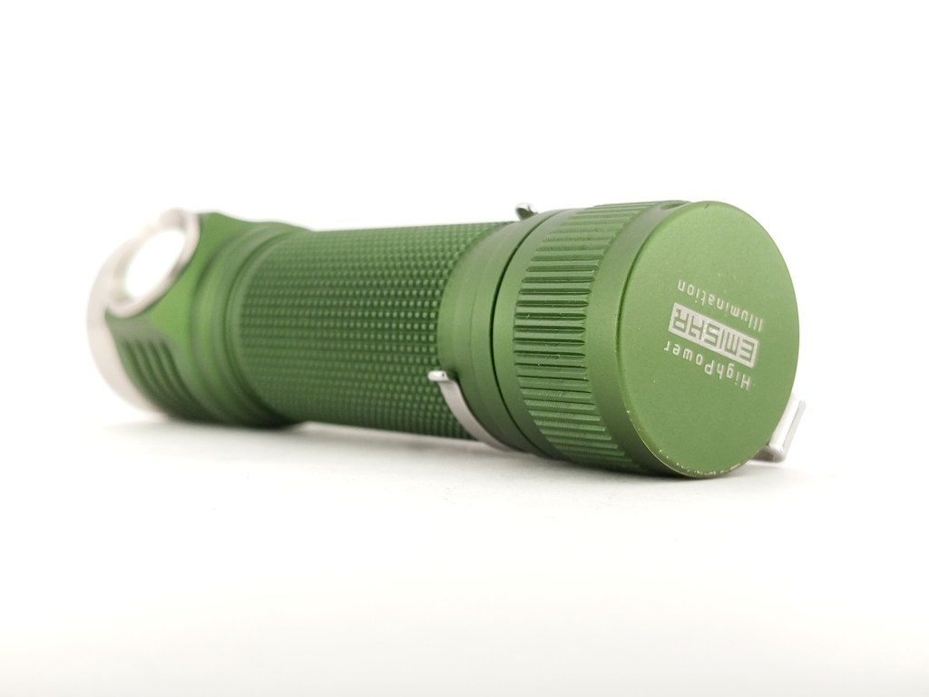Build quality is pretty good, as is typical from Emisar/Noctigon. The green anodizing is evenly applied and looks good, but it’s started to wear on the tailcap after 2-3 weeks of carry. It’s not as durable as black anodizing I usually prefer. The threads are smooth, anodized, trapezoid cut, and lubricated from the factory. The body tube is not reversible.