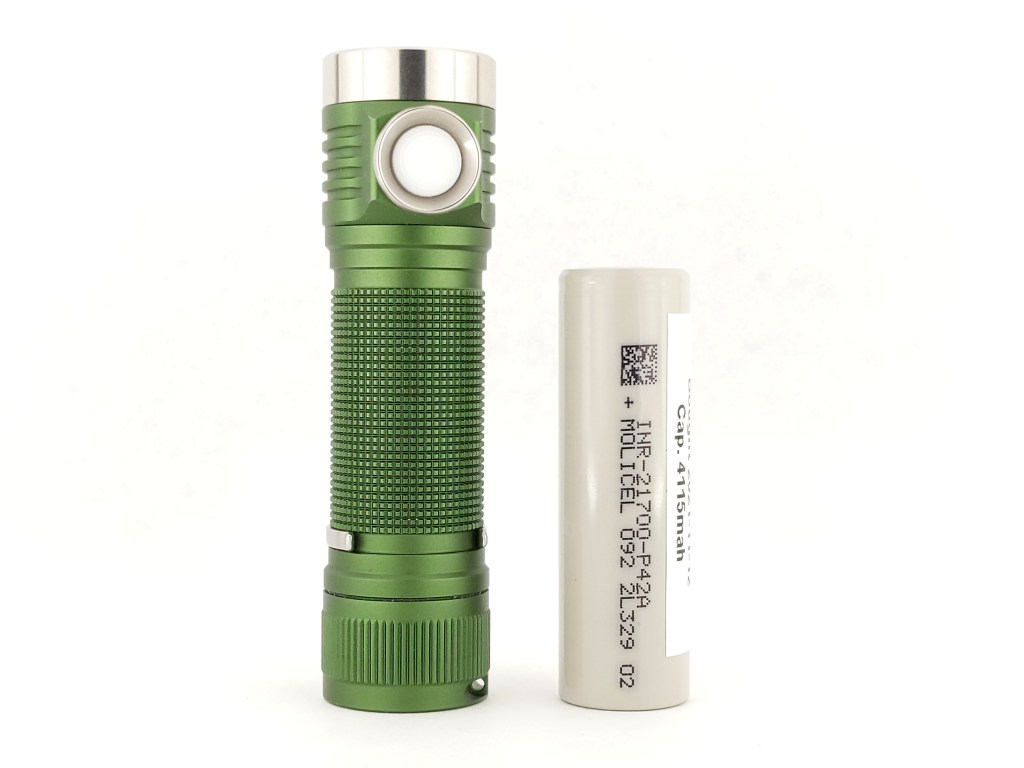 D4K uses one unprotected flat top 21700 cell. Something with a ~20A+ discharge rating is best unless you get the boost driver. Then 10A+ will be just fine. I did all my testing with a Molicel P42A but the light did dent the positive terminal on the cell a bit. That’s not a problem because the cell still works fine, but there are other lights that don’t do that, so this one shouldn’t either.
