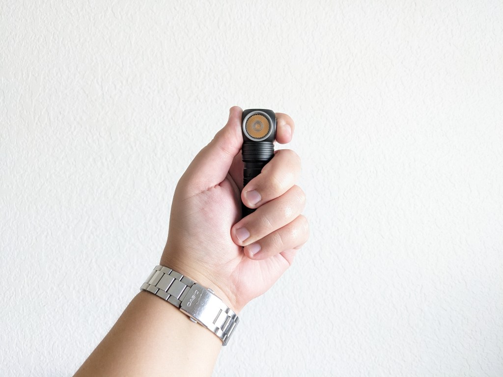 H300 is primarily designed for use as a headlamp, and the handheld ergonomics suffer a bit as a result. It’s a bit small for a comfortable grip and the button is on the side of the head, which is a weird spot when the light also points sideways but in a different direction. The image above shows the best handheld grip I’ve found.