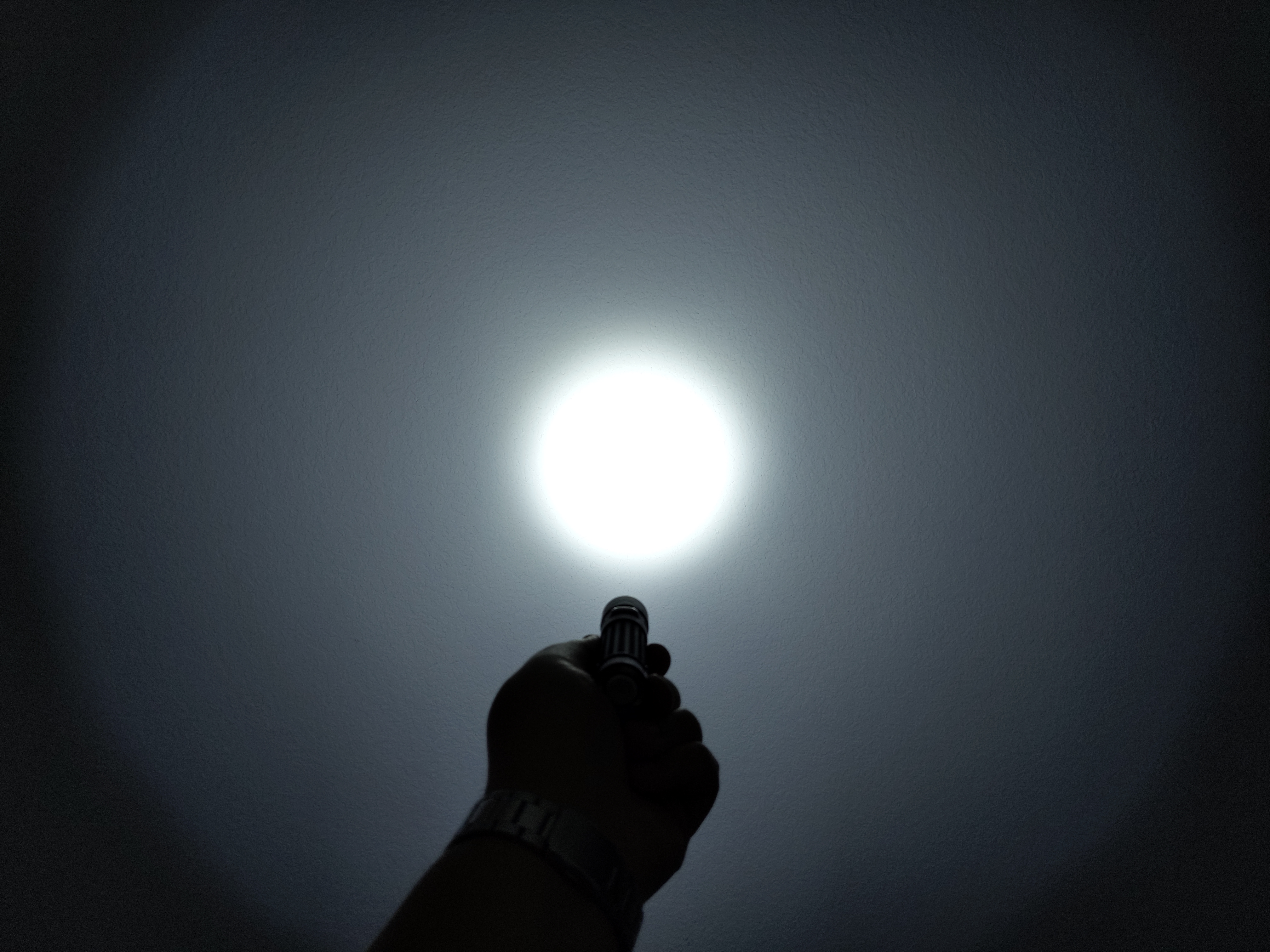 Disclaimer: All of my measurements are taken at turn-on. Lumen measurements were taken on a Texas Ace 3.5″ Lumen Tube. A candela measurement was taken at 10 meters with an Opple Light Master III on the highest brightness, and other candela figures were calculated relative to that. CRI, CCT, & DUV data were taken for each mode from a few feet away at the center of the hotspot with the Opple Light Master and Waveform DUV Calculator. Runtime tests were performed with the Ceilingbounce app on my smartphone. All of these tests were performed with a fully charged included battery unless otherwise specified. I cannot measure moonlight directly, so moonlight readings are calculated based on the brightness relative to the next-lowest mode. None of this is professional equipment, so take all of these measurements with a grain of salt.